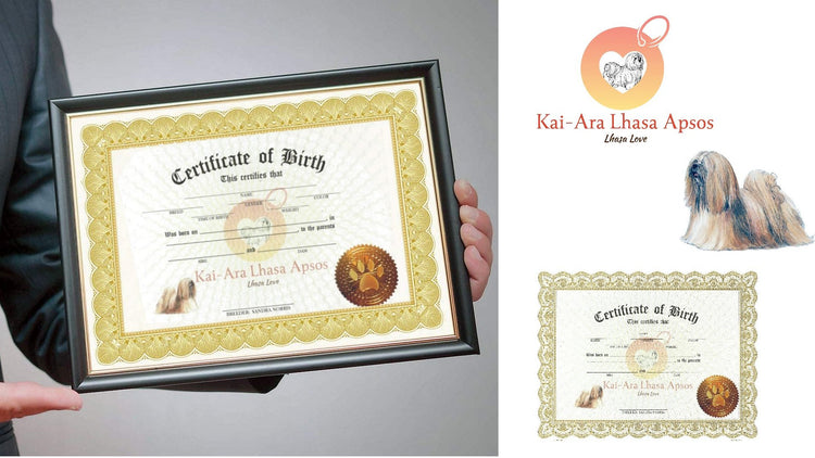 Custom made birth certificates for your kennel. Add your kennel logo and breed image and/or actual sire or dam to a full color, gold foil sealed, heavy stock birth certificate for your puppy take home packs. Minimum Order required.