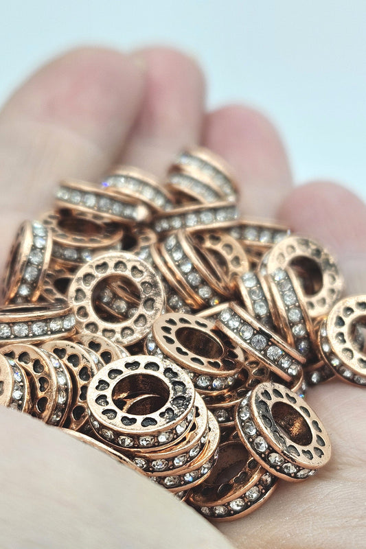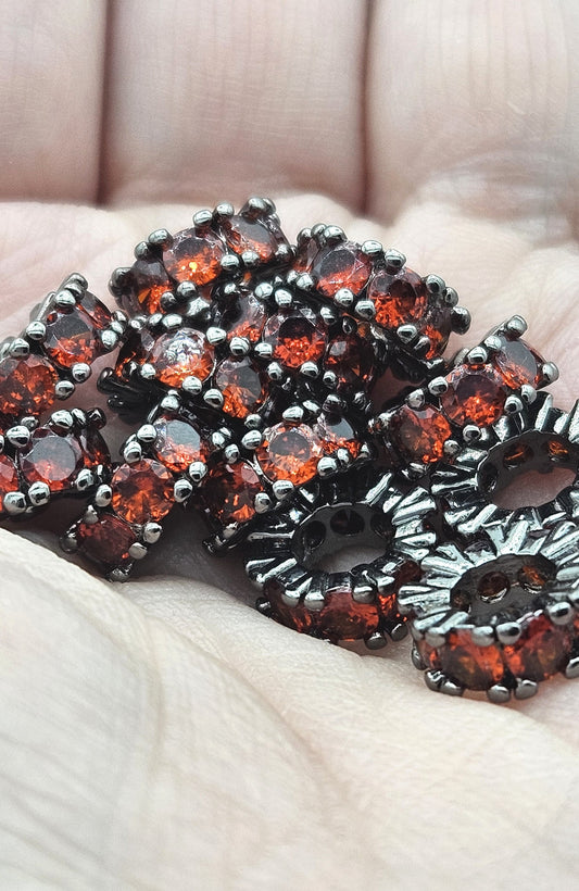 Rhinestone Spacer Beads Red Copper with Clear Crystals - pk 10