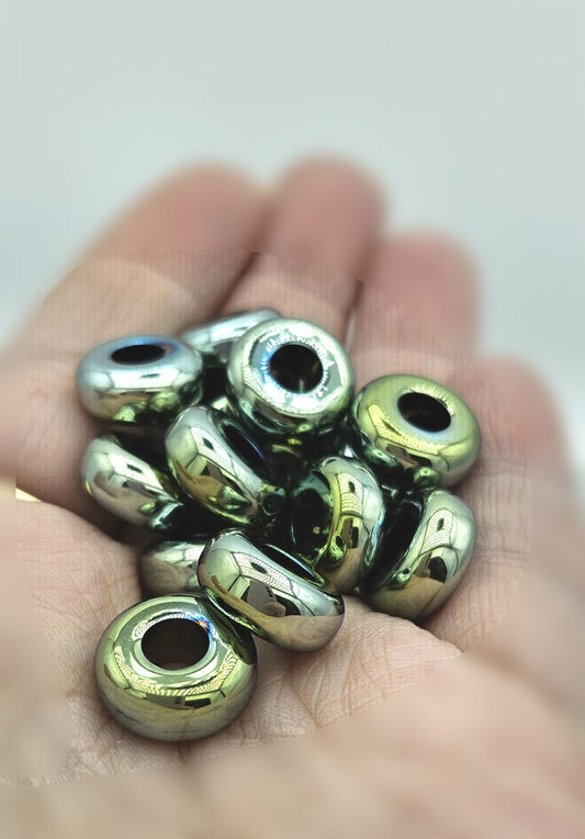 Hematite Green Teal Gold Spacer Beads - pk of 4