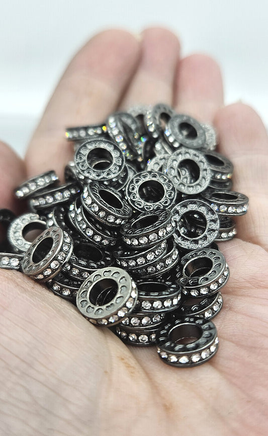 Rhinestone Spacer Beads Black with Clear Crystals - pk 10