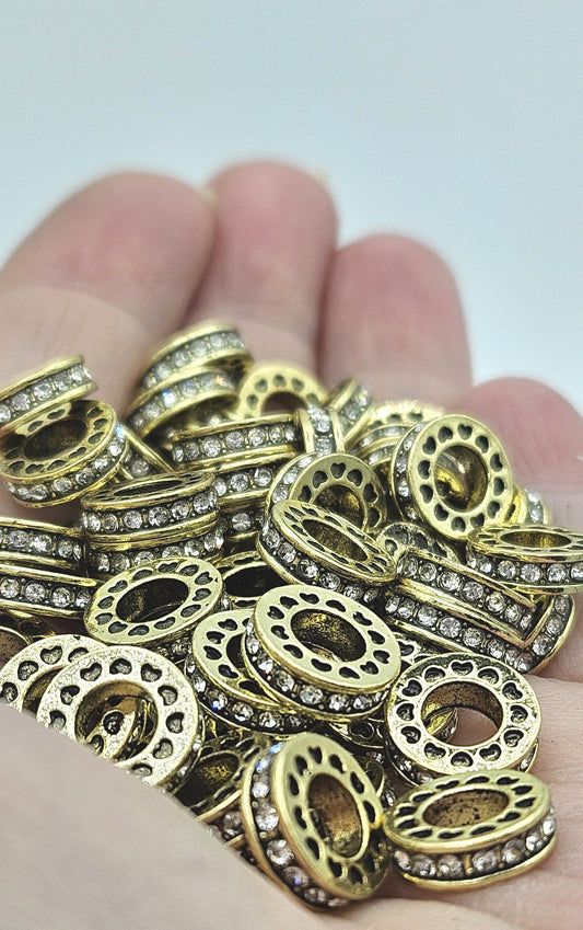 Rhinestone Spacer Beads Gold with Clear Crystals - pk 10