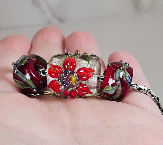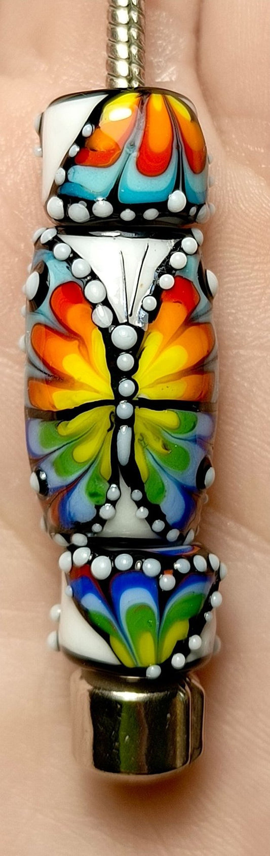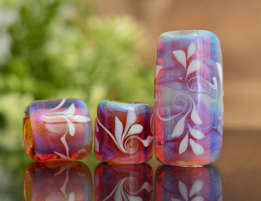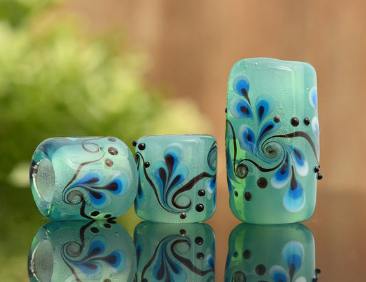 Our Lampwork beads are hand made by artists around the world, using a torch and glass rod which is fired and annealed in a kiln for strength, and smoothed for use in show leads.