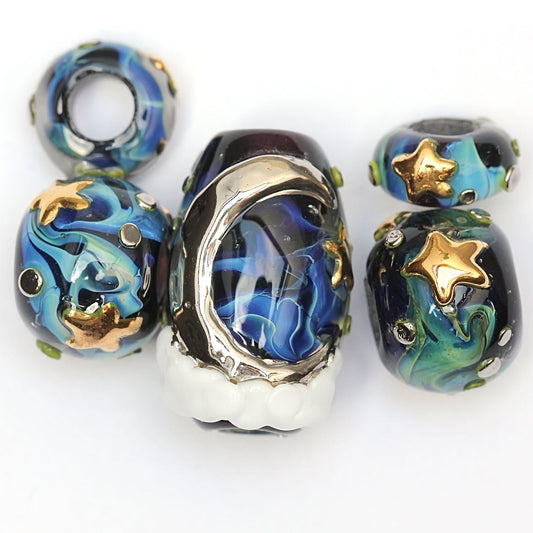 Our Lampwork beads are hand made by artists around the world, using a torch and glass rod which is fired and annealed in a kiln for strength, and smoothed for use in show leads.