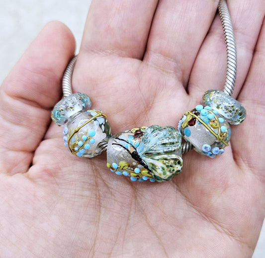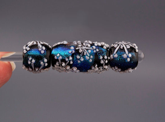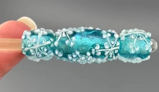 Our Lampwork beads are hand made by artists around the world, using a torch and glass rod which is fired and annealed in a kiln for strength, and smoothed for use in show leads.
