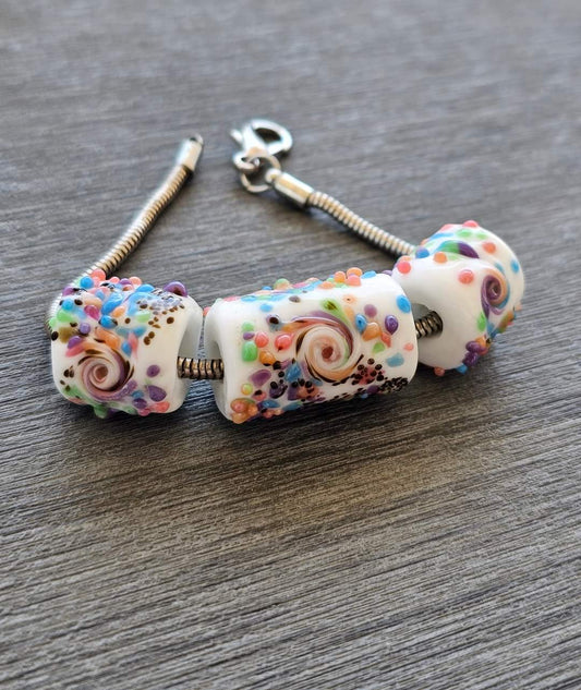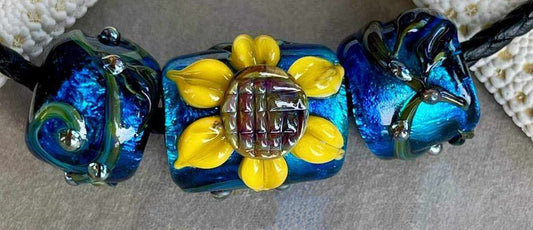 Our Lampwork beads are hand made by artists around the world, using a torch and glass rod which is fired and annealed in a kiln for strength, and smoothed for use in show leads.