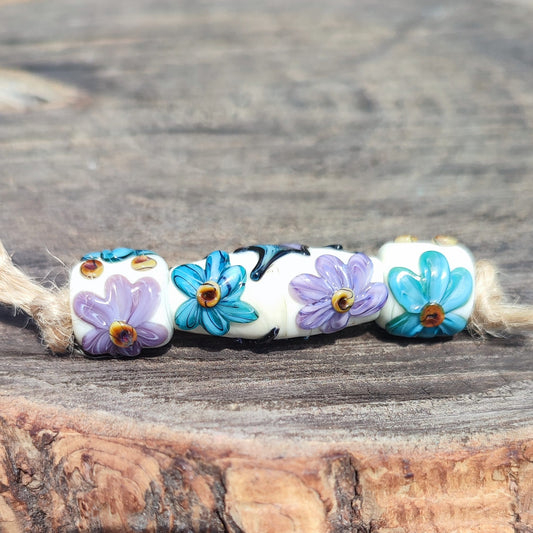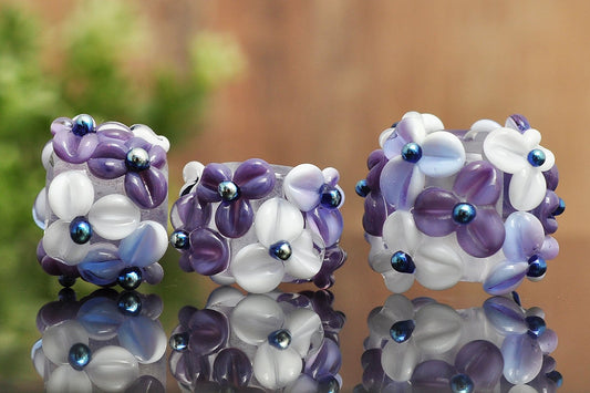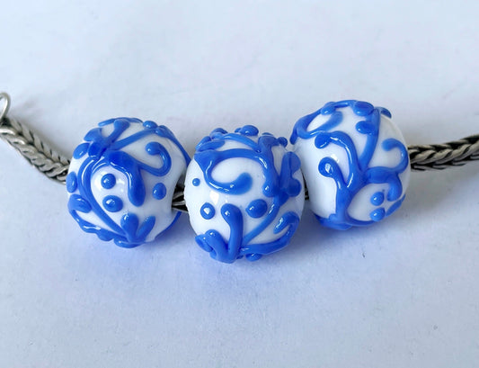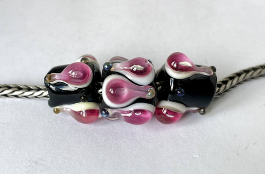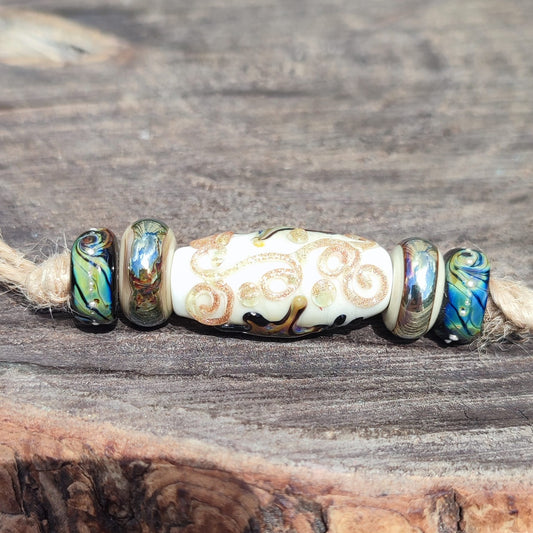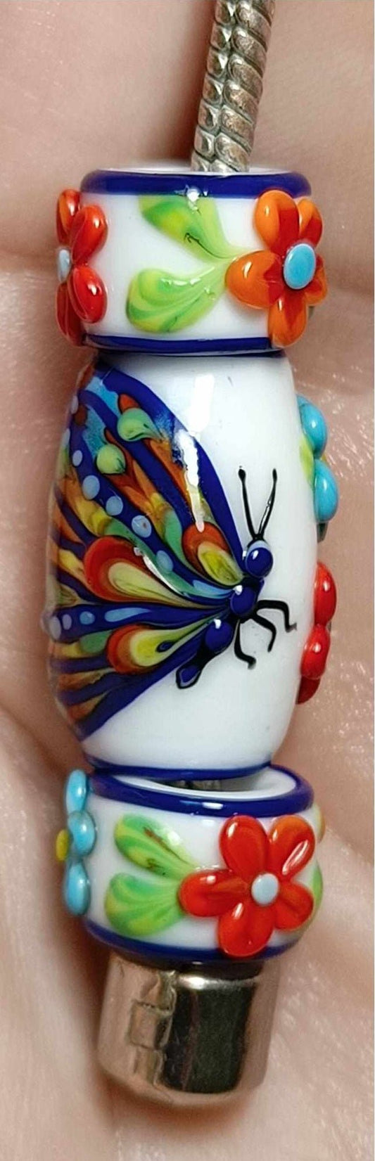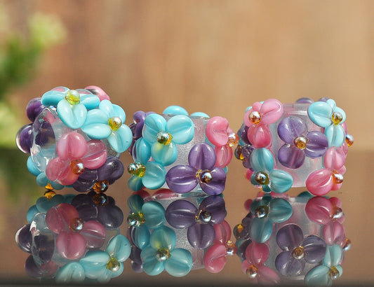 Our Lampwork beads are hand made by artists around the world, using a torch and glass rod which is fired and annealed in a kiln for strength, and smoothed for use in show leads.