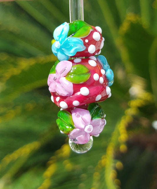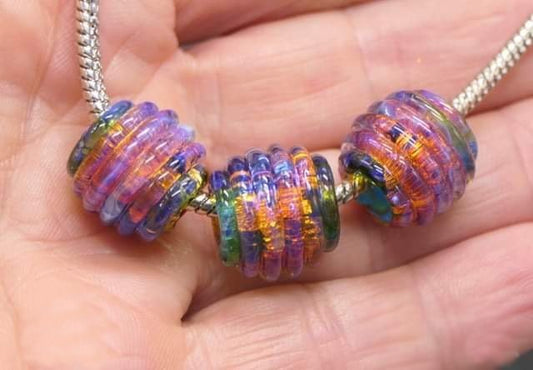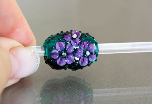 Our Lampwork beads are hand made by artists around the world, using a torch and glass rod which is fired and annealed in a kiln for strength, and smoothed for use in show leads.