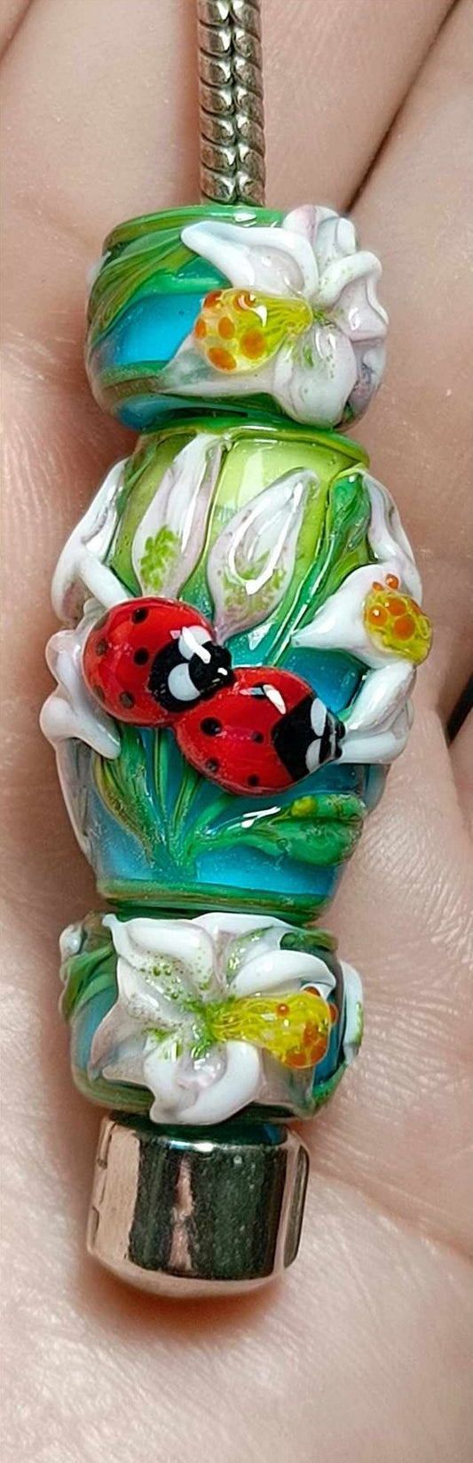 Our Lampwork beads are hand made by artists around the world, using a torch and glass rod which is fired and annealed in a kiln for strength, and smoothed for use in show leads.