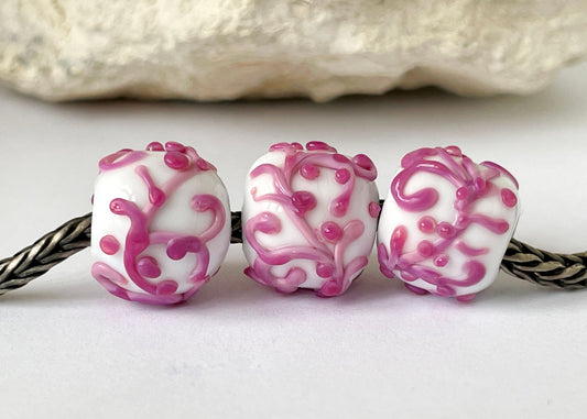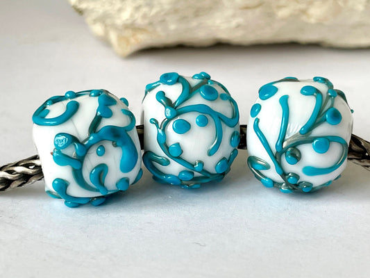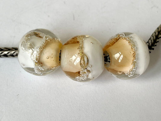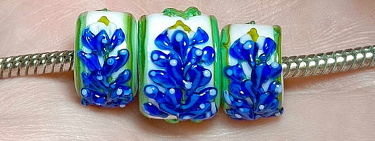 Our Lampwork beads are hand made by artists around the world, using a torch and glass rod which is fired and annealed in a kiln for strength, and smoothed for use in show leads.