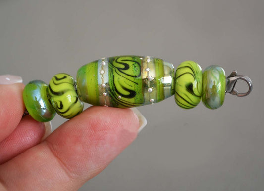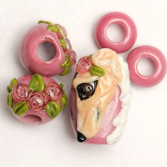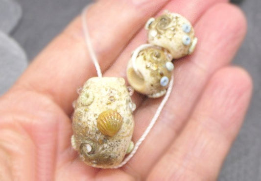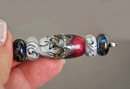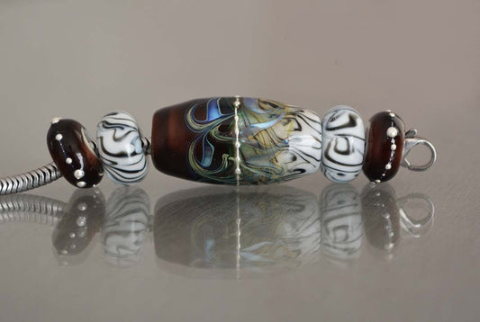Our Lampwork beads are hand made by artists around the world, using a torch and glass rod which is fired and annealed in a kiln for strength, and smoothed for use in show leads.