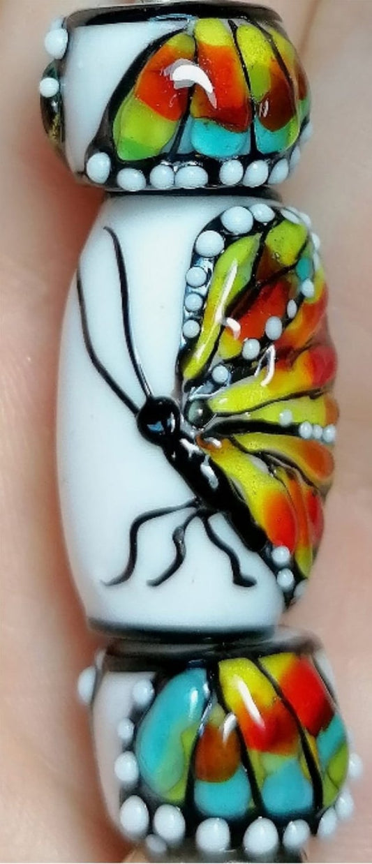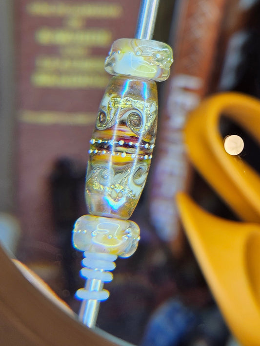 Our Lampwork beads are hand made by artists around the world, using a torch and glass rod which is fired and annealed in a kiln for strength, and smoothed for use in show leads.