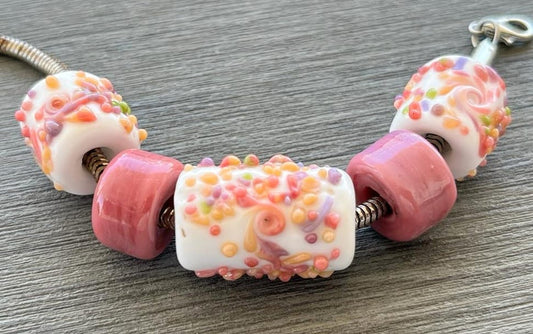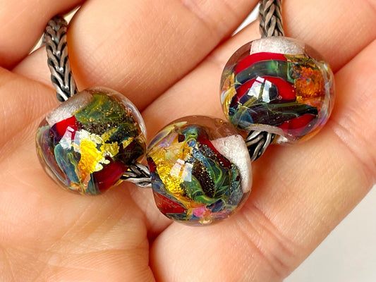 Our Lampwork beads are hand made by artists around the world, using a torch and glass rod which is fired and annealed in a kiln for strength, and smoothed for use in show leads.