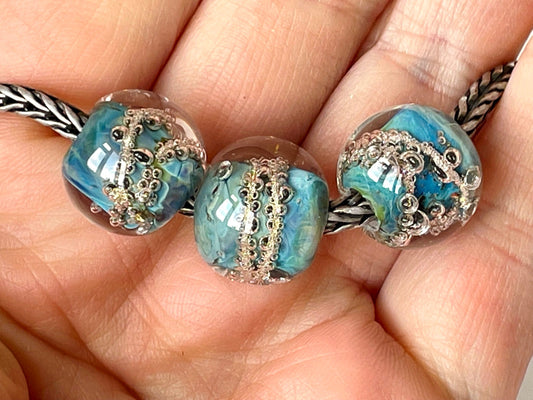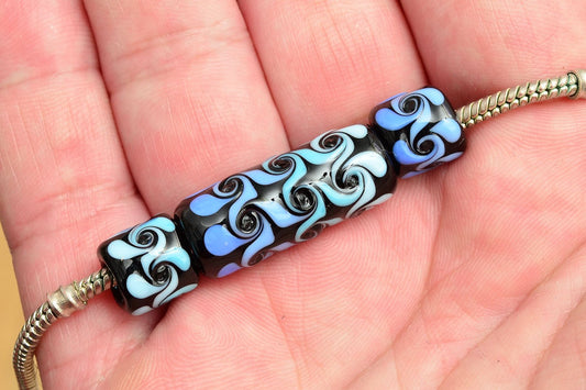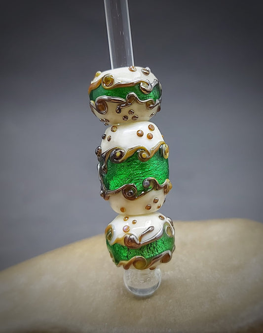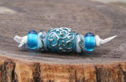 Our Lampwork beads are hand made by artists around the world, using a torch and glass rod which is fired and annealed in a kiln for strength, and smoothed for use in show leads.