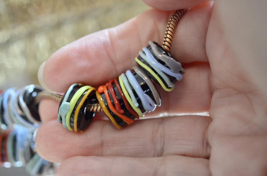 Our Lampwork beads are hand made by artists around the world, using a torch and glass rod which is fired and annealed in a kiln for strength, and smoothed for use in show leads.