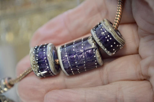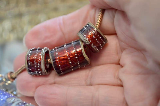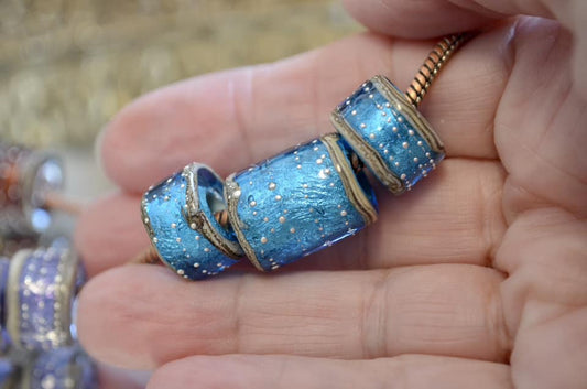 Our Lampwork beads are hand made by artists around the world, using a torch and glass rod which is fired and annealed in a kiln for strength, and smoothed for use in show leads.