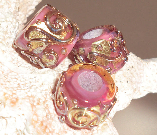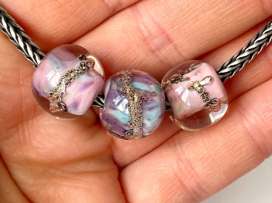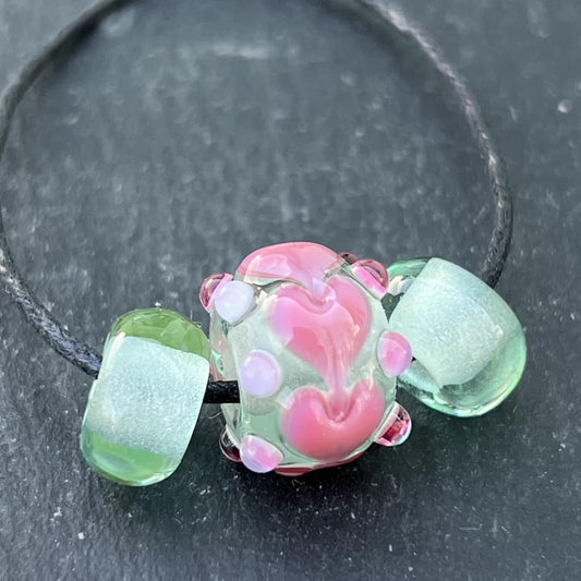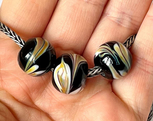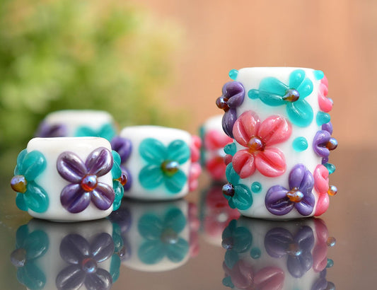 Our Lampwork beads are hand made by artists around the world, using a torch and glass rod which is fired and annealed in a kiln for strength, and smoothed for use in show leads.