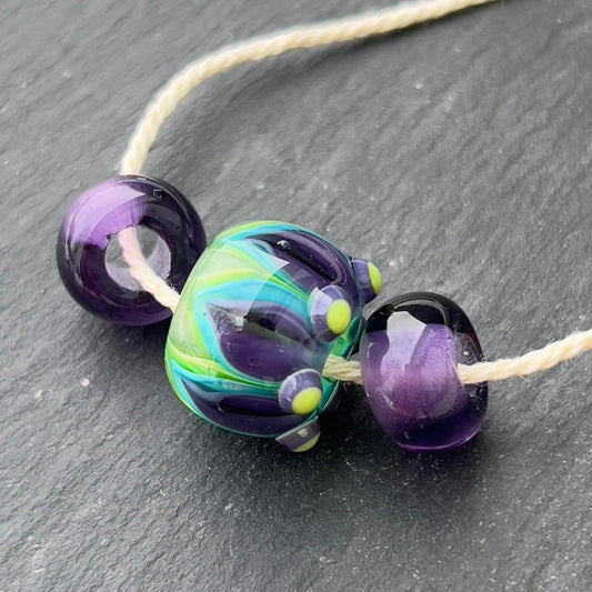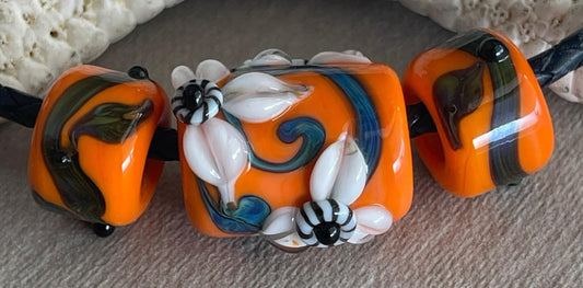 Our Lampwork beads are hand made by artists around the world, using a torch and glass rod which is fired and annealed in a kiln for strength, and smoothed for use in show leads.