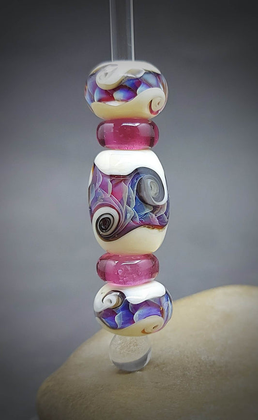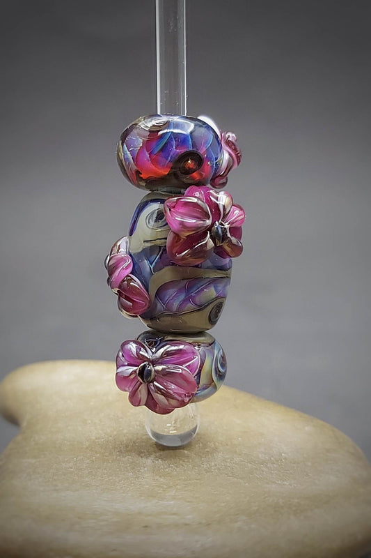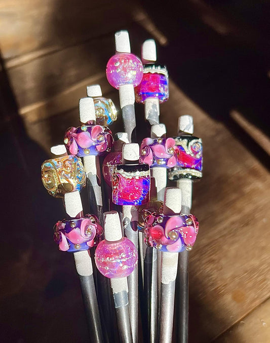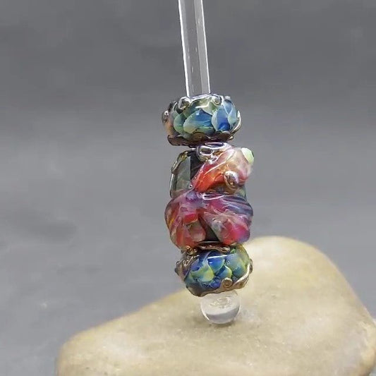 Our Lampwork beads are hand made by artists around the world, using a torch and glass rod which is fired and annealed in a kiln for strength, and smoothed for use in show leads.