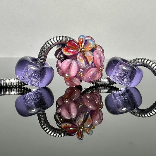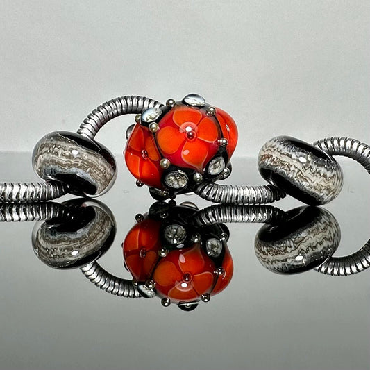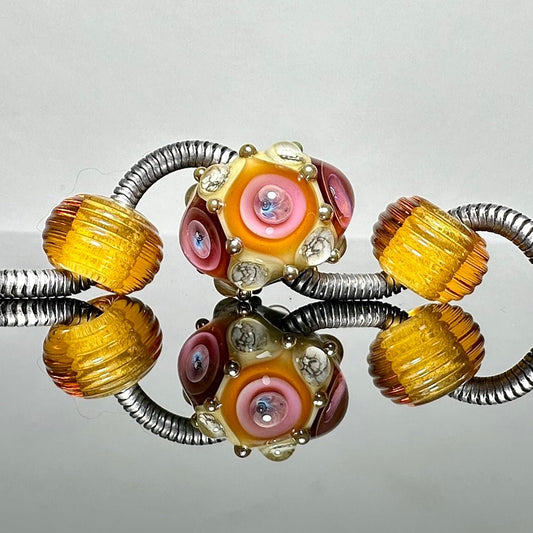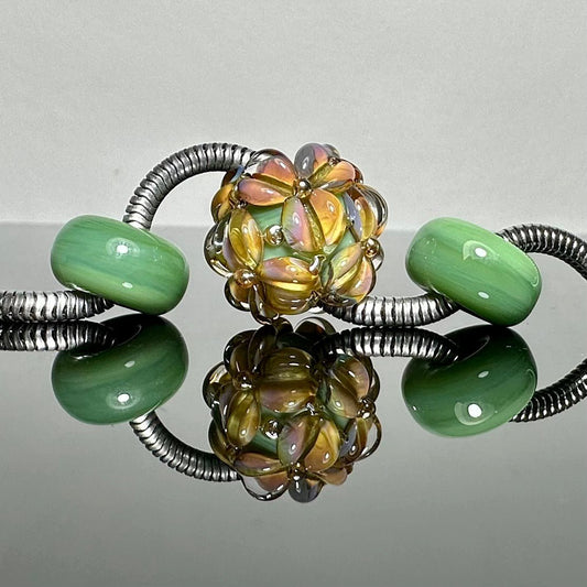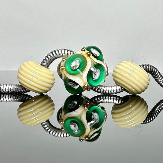Our Lampwork beads are hand made by artists around the world, using a torch and glass rod which is fired and annealed in a kiln for strength, and smoothed for use in show leads.