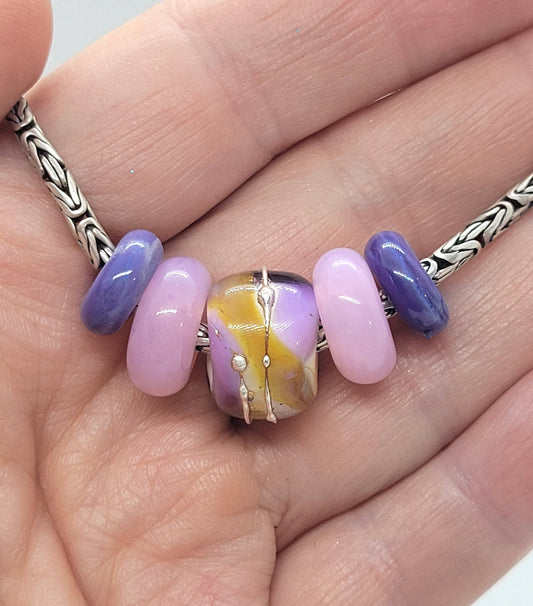 Our Lampwork beads are hand made by artists around the world, using a torch and glass rod which is fired and annealed in a kiln for strength, and smoothed for use in show leads.