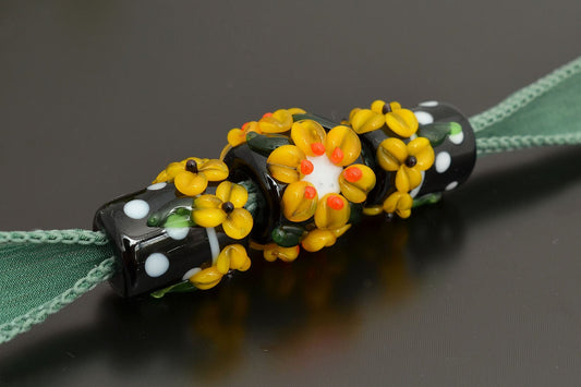 Our Lampwork beads are hand made by artists around the world, using a torch and glass rod which is fired and annealed in a kiln for strength, and smoothed for use in show leads.