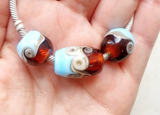 Our Lampwork beads are hand made by artists around the world, using a torch and glass rod which is fired and annealed in a kiln for strength, and smoothed for use in show leads.