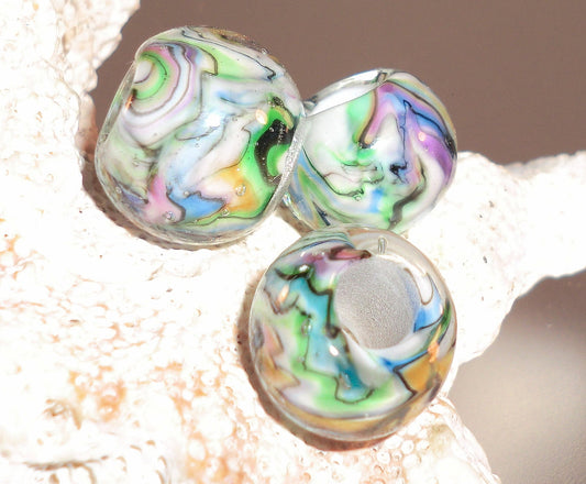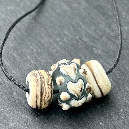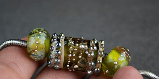 Our Lampwork beads are hand made by artists around the world, using a torch and glass rod which is fired and annealed in a kiln for strength, and smoothed for use in show leads.