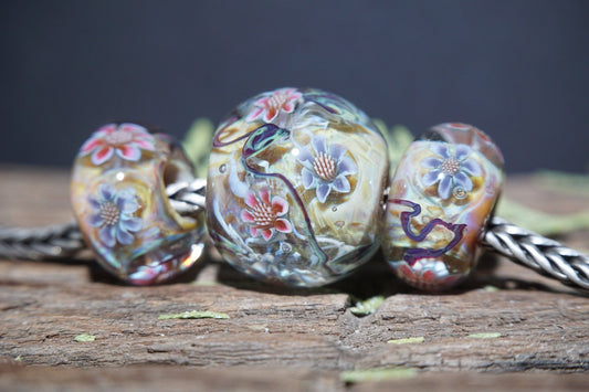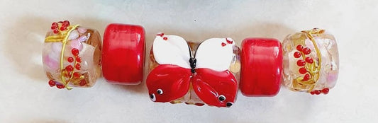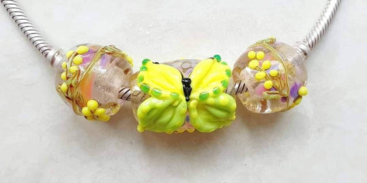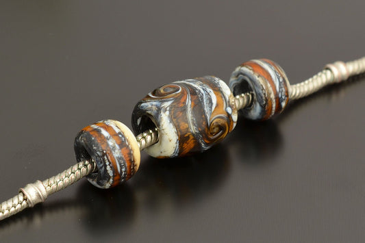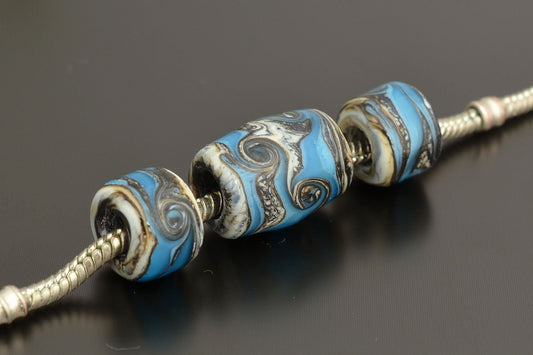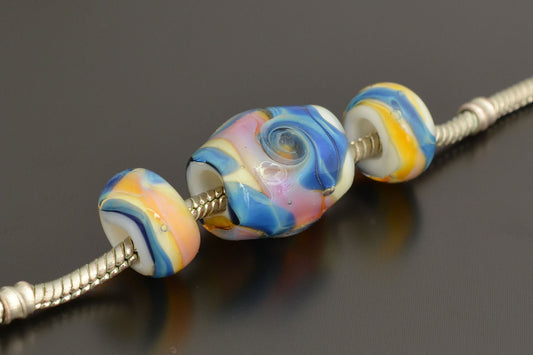 Our Lampwork beads are hand made by artists around the world, using a torch and glass rod which is fired and annealed in a kiln for strength, and smoothed for use in show leads.