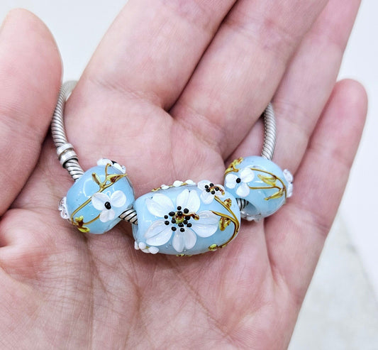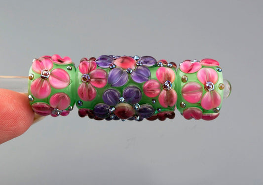 Our Lampwork beads are hand made by artists around the world, using a torch and glass rod which is fired and annealed in a kiln for strength, and smoothed for use in show leads.