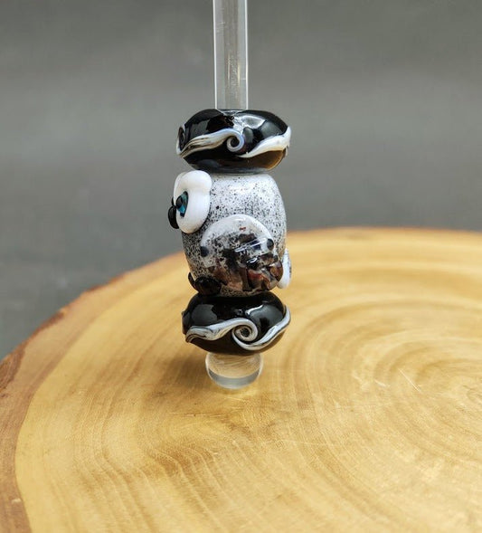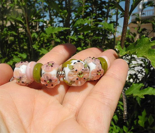 Our Lampwork beads are hand made by artists around the world, using a torch and glass rod which is fired and annealed in a kiln for strength, and smoothed for use in show leads.