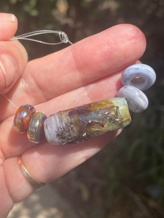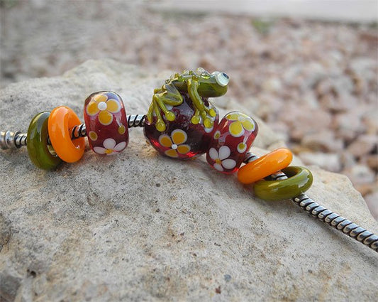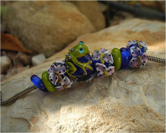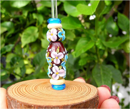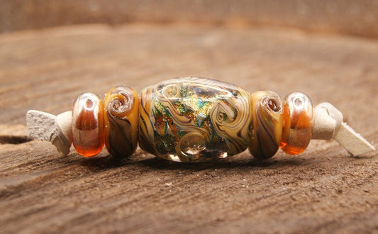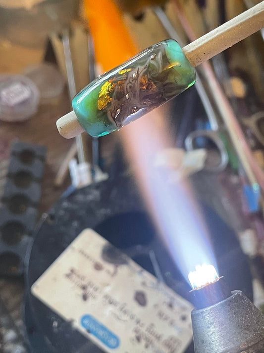 Our Lampwork beads are hand made by artists around the world, using a torch and glass rod which is fired and annealed in a kiln for strength, and smoothed for use in show leads.