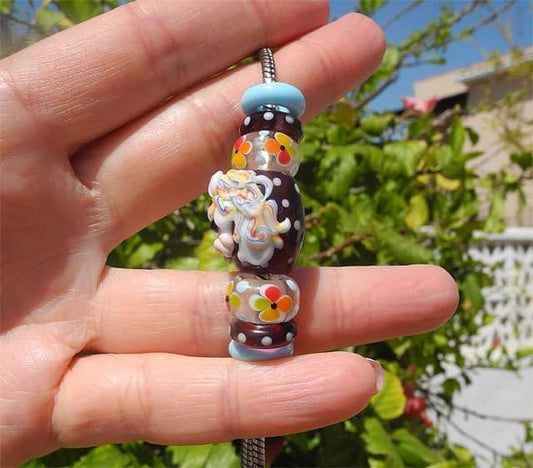 Our Lampwork beads are hand made by artists around the world, using a torch and glass rod which is fired and annealed in a kiln for strength, and smoothed for use in show leads.