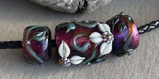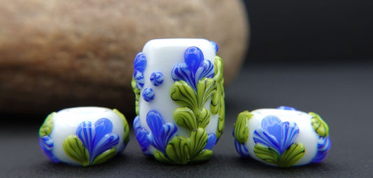 Our Lampwork beads are hand made by artists around the world, using a torch and glass rod which is fired and annealed in a kiln for strength, and smoothed for use in show leads.