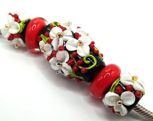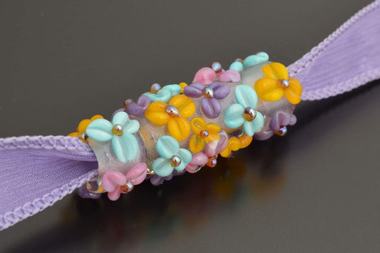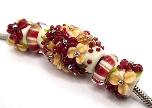 Our Lampwork beads are hand made by artists around the world, using a torch and glass rod which is fired and annealed in a kiln for strength, and smoothed for use in show leads.