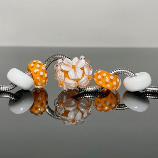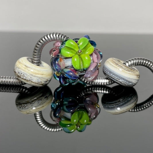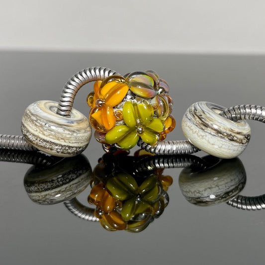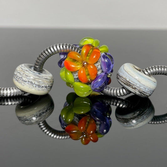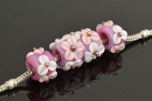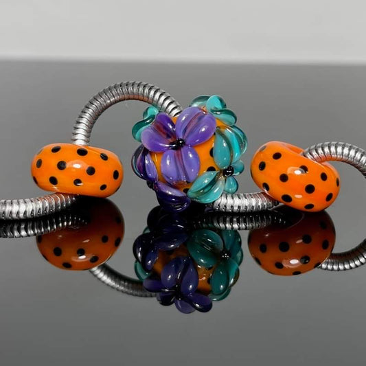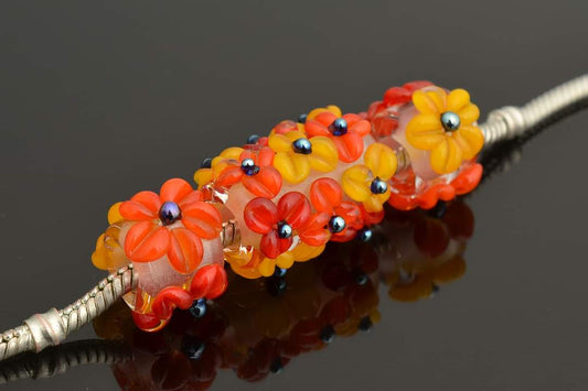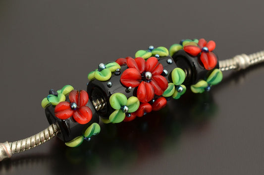 Our Lampwork beads are hand made by artists around the world, using a torch and glass rod which is fired and annealed in a kiln for strength, and smoothed for use in show leads.