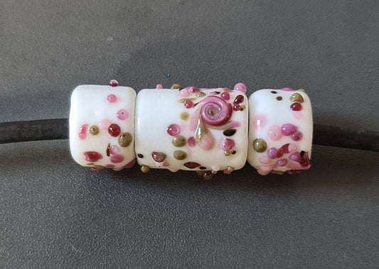 Our Lampwork beads are hand made by artists around the world, using a torch and glass rod which is fired and annealed in a kiln for strength, and smoothed for use in show leads.