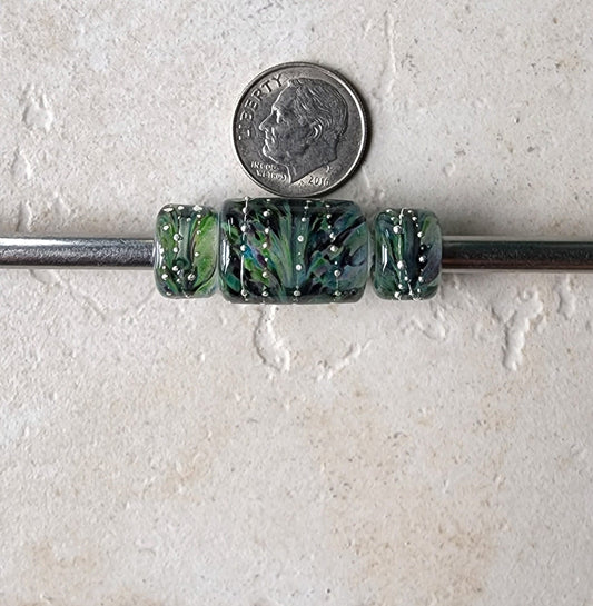 Our Lampwork beads are hand made by artists around the world, using a torch and glass rod which is fired and annealed in a kiln for strength, and smoothed for use in show leads.
