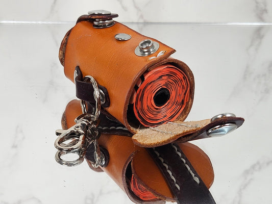 Seamlessly blending functionality with elegance, this leather waste bag dispenser is a stylish and practical accessory perfect for every dog lover.