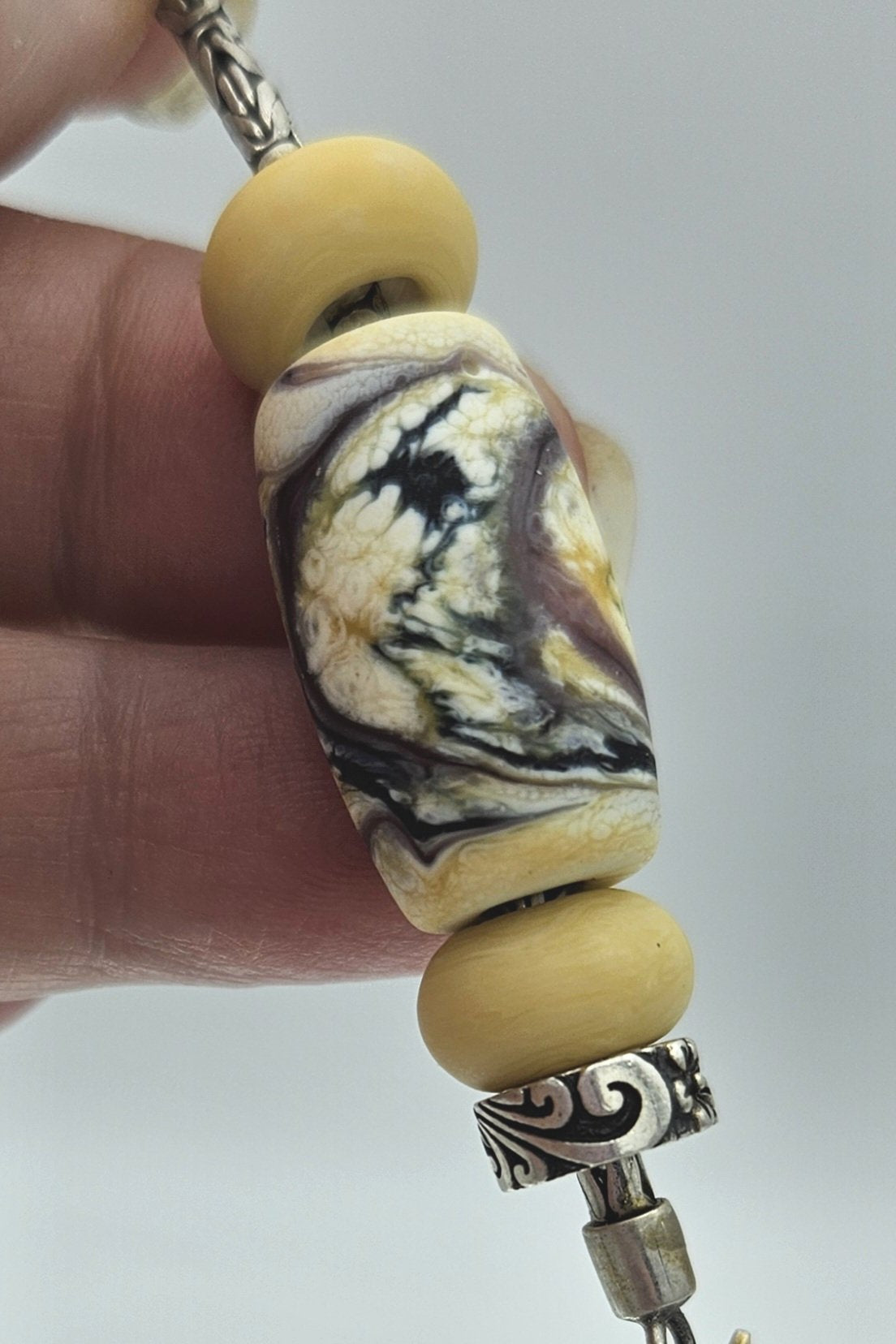 These beads are handmade by the glass artist Johanna Stephenson. Setting options are all in one focal cluster or set separately along the lead.