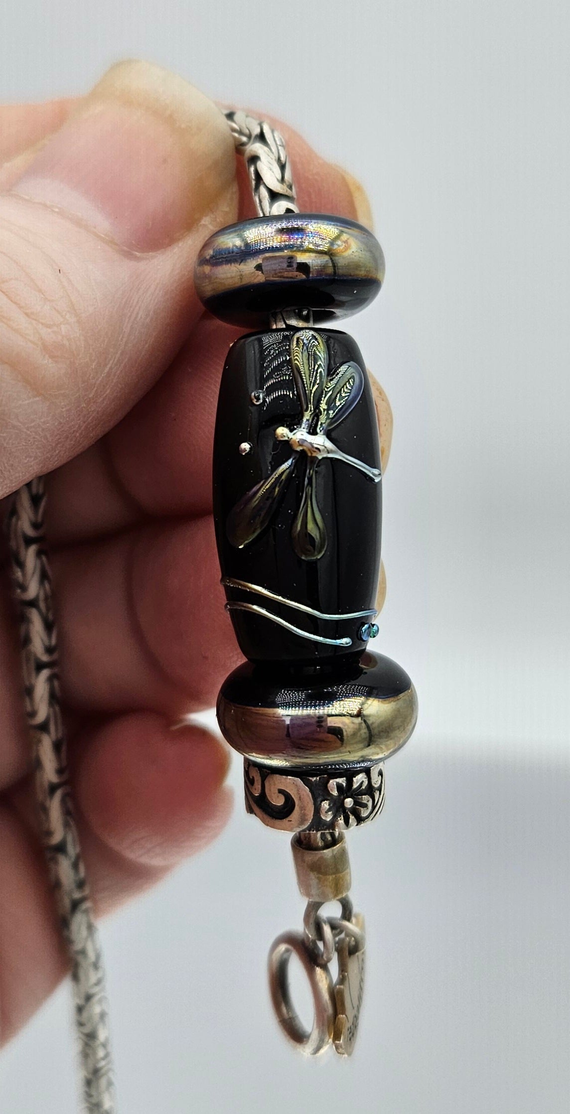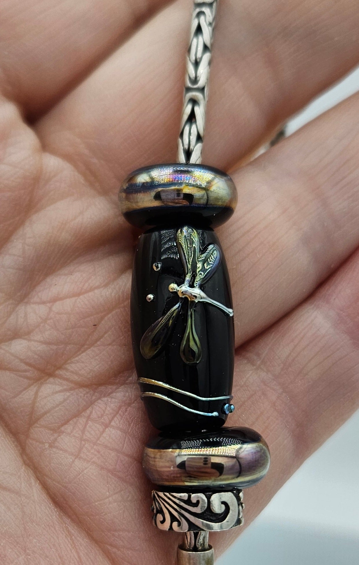 This beads is handmade by the glass artist Olia Oleksiichuk. Side beads will accompany this gorgeous focal at no additional cost. This is a purchase of 1 focal and 2 smaller glass sides, not pictured.
