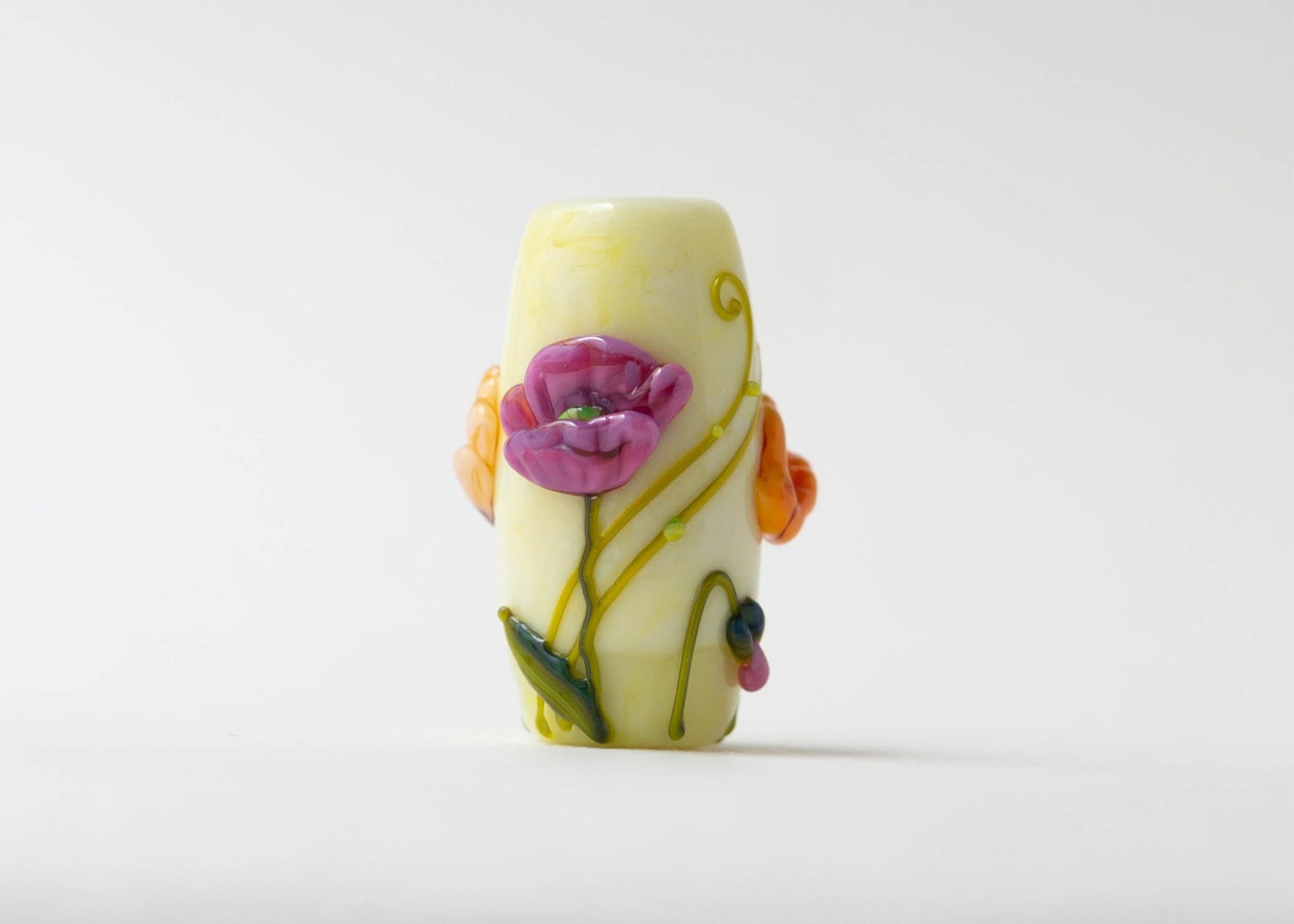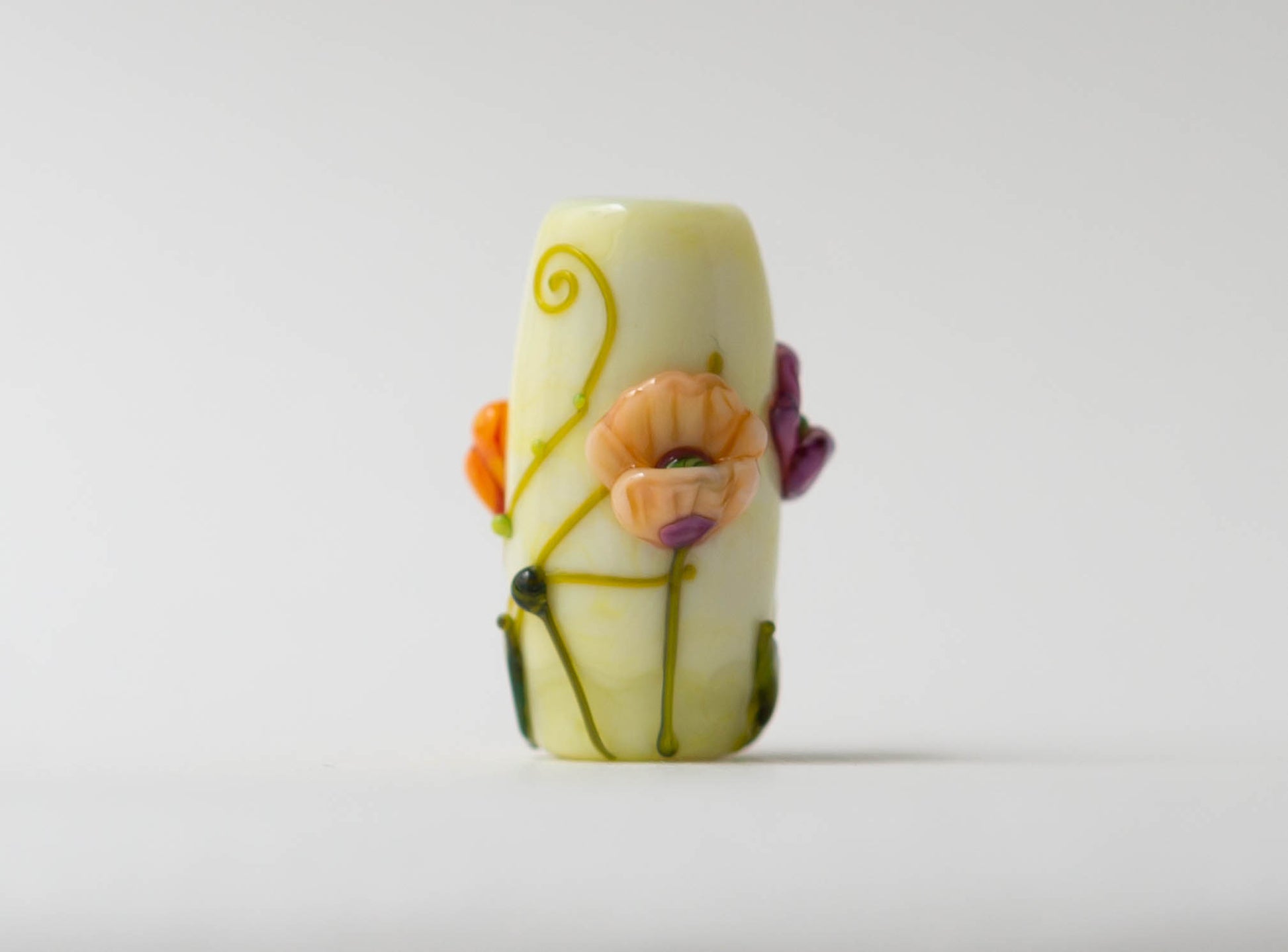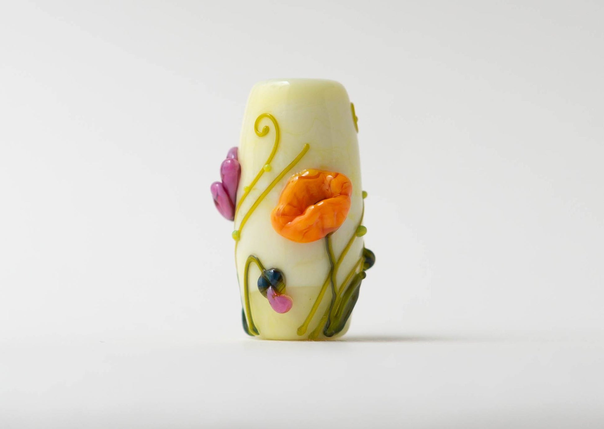 This beads is handmade by the glass artist Olia Oleksiichuk. Side beads will accompany this gorgeous focal at no additional cost. This is a purchase of 1 focal and 2 smaller glass sides, not pictured.