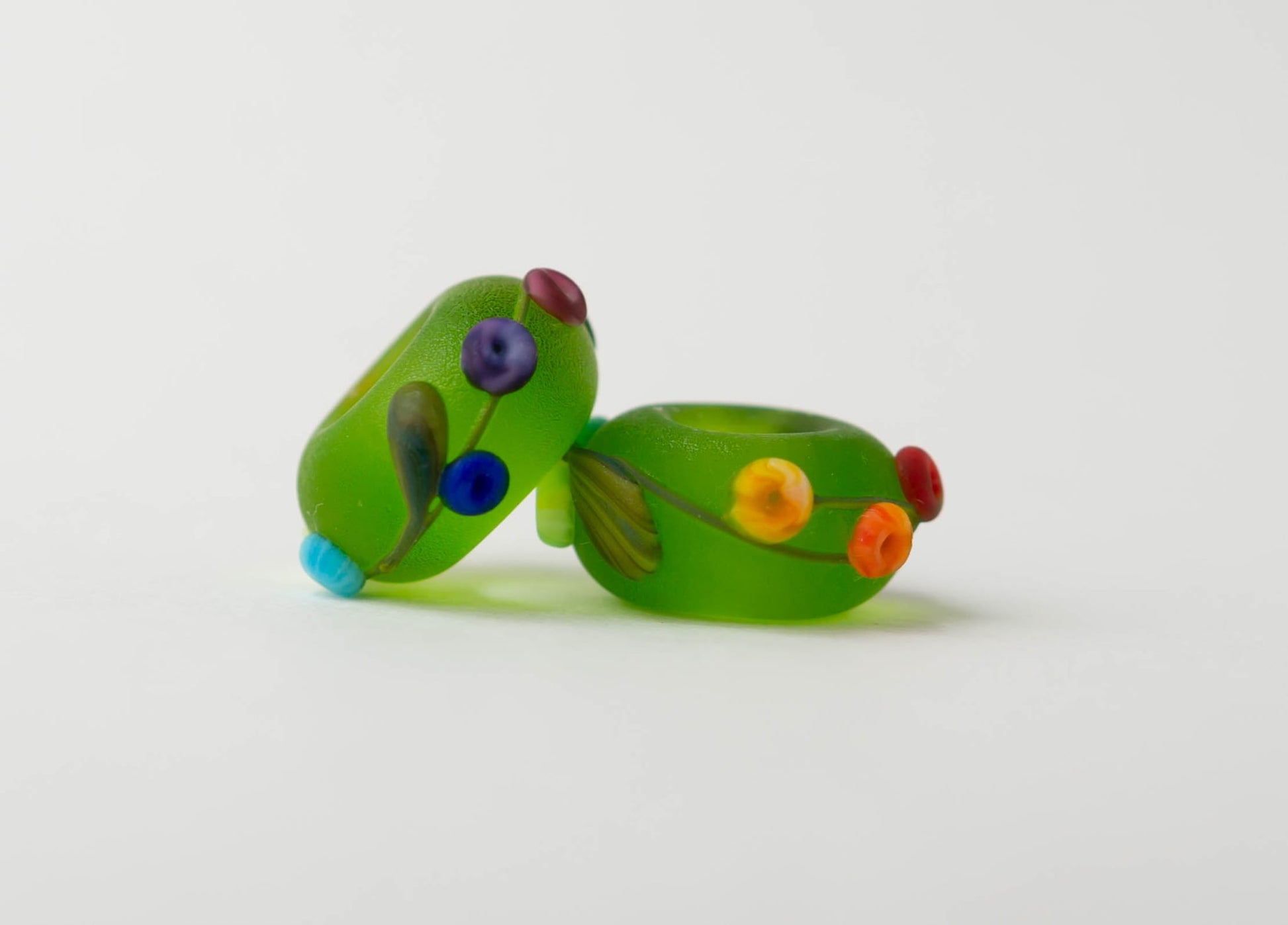 This beads is handmade by the glass artist Olia Oleksiichuk. This is a 3 bead set with matching sides.