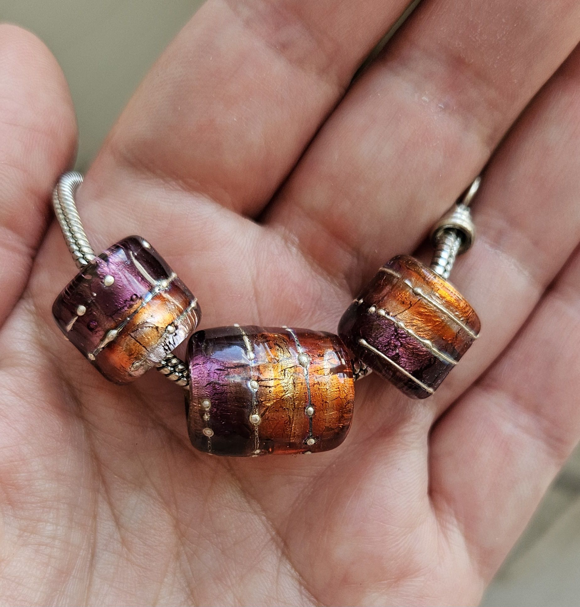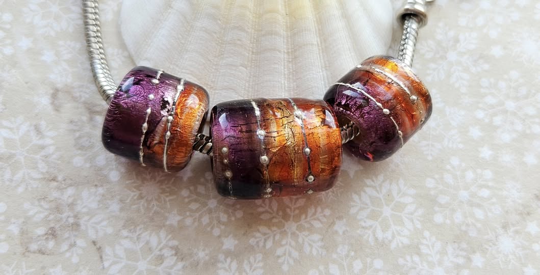 These beads are handmade by the glass artist Nadya Sokolova.