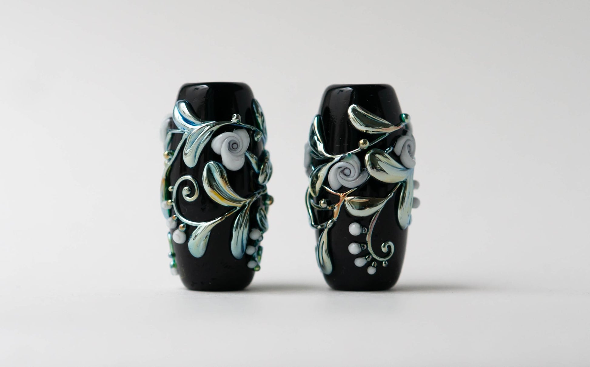 This beads is handmade by the glass artist Olia Oleksiichuk. Side beads will accompany this gorgeous focal at no additional cost. This is a purchase of 1 focal and 2 smaller glass sides, not pictured.