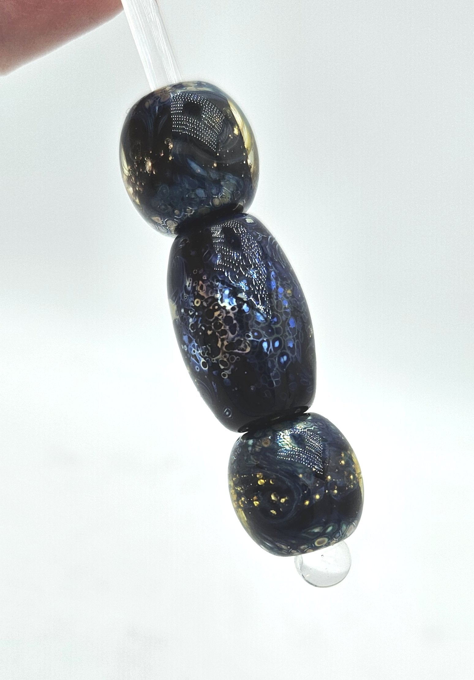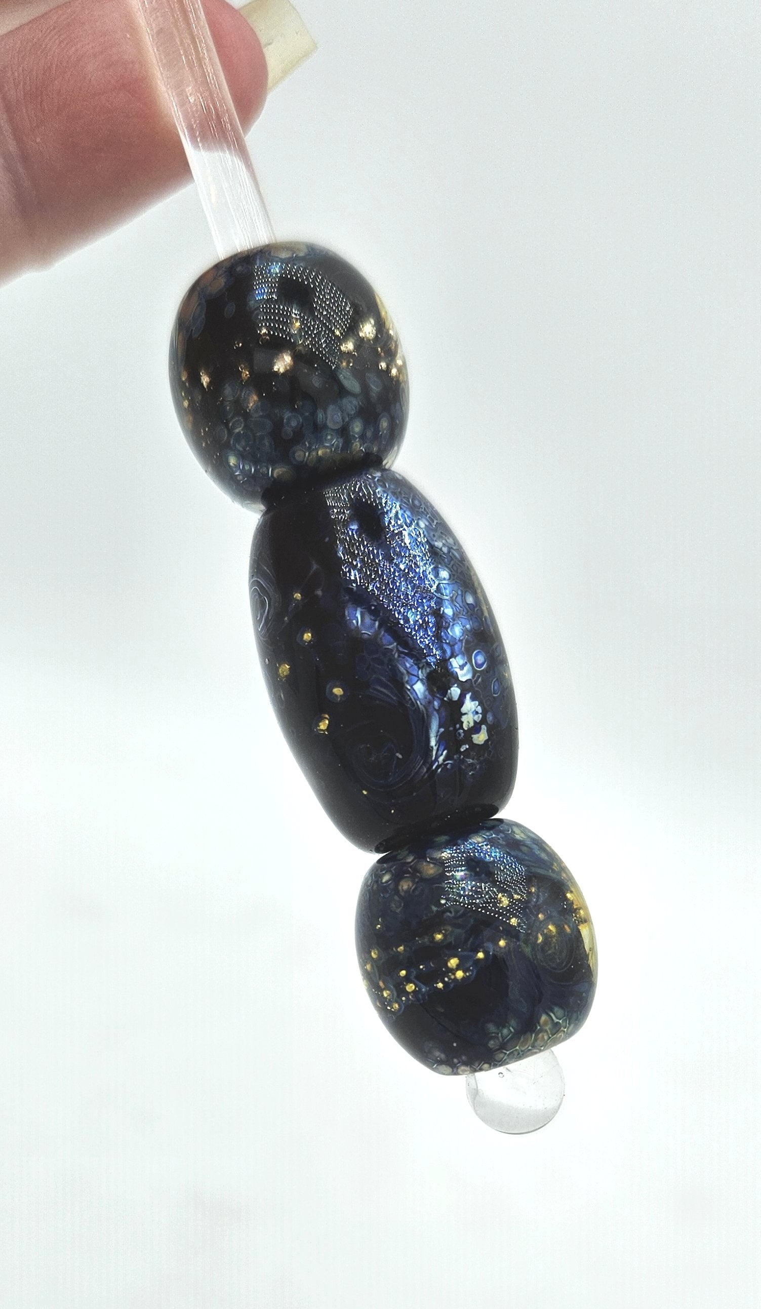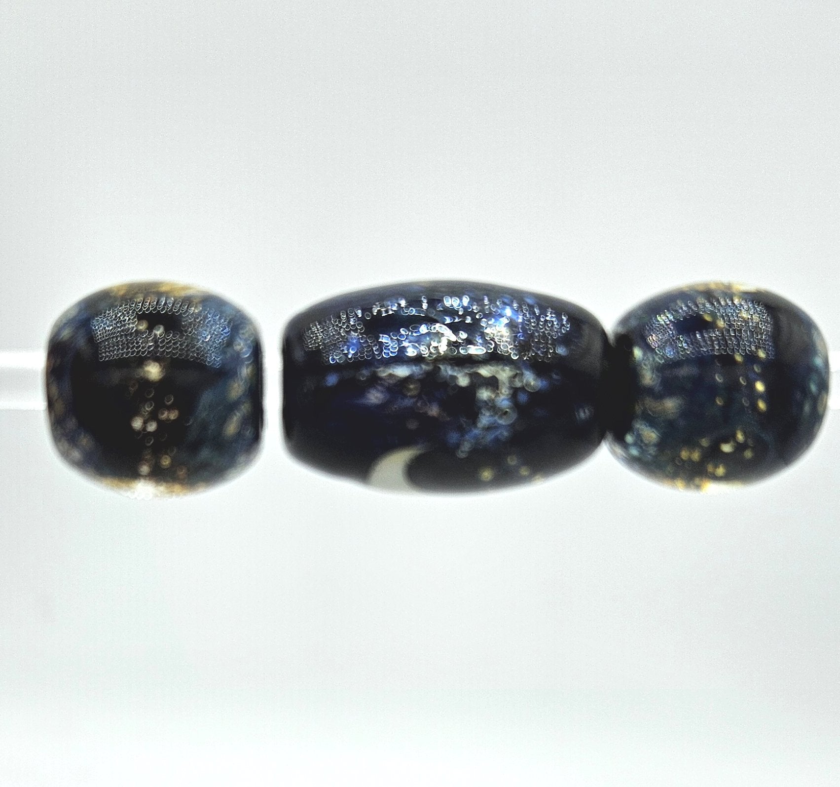 **There are several versions of this style bead by this artist. This is the larger set of beads and preferred for medium to larger breeds. For smaller breeds see the Galaxy Night Sky, Galaxy Night Skies or Moonlit seas versions.