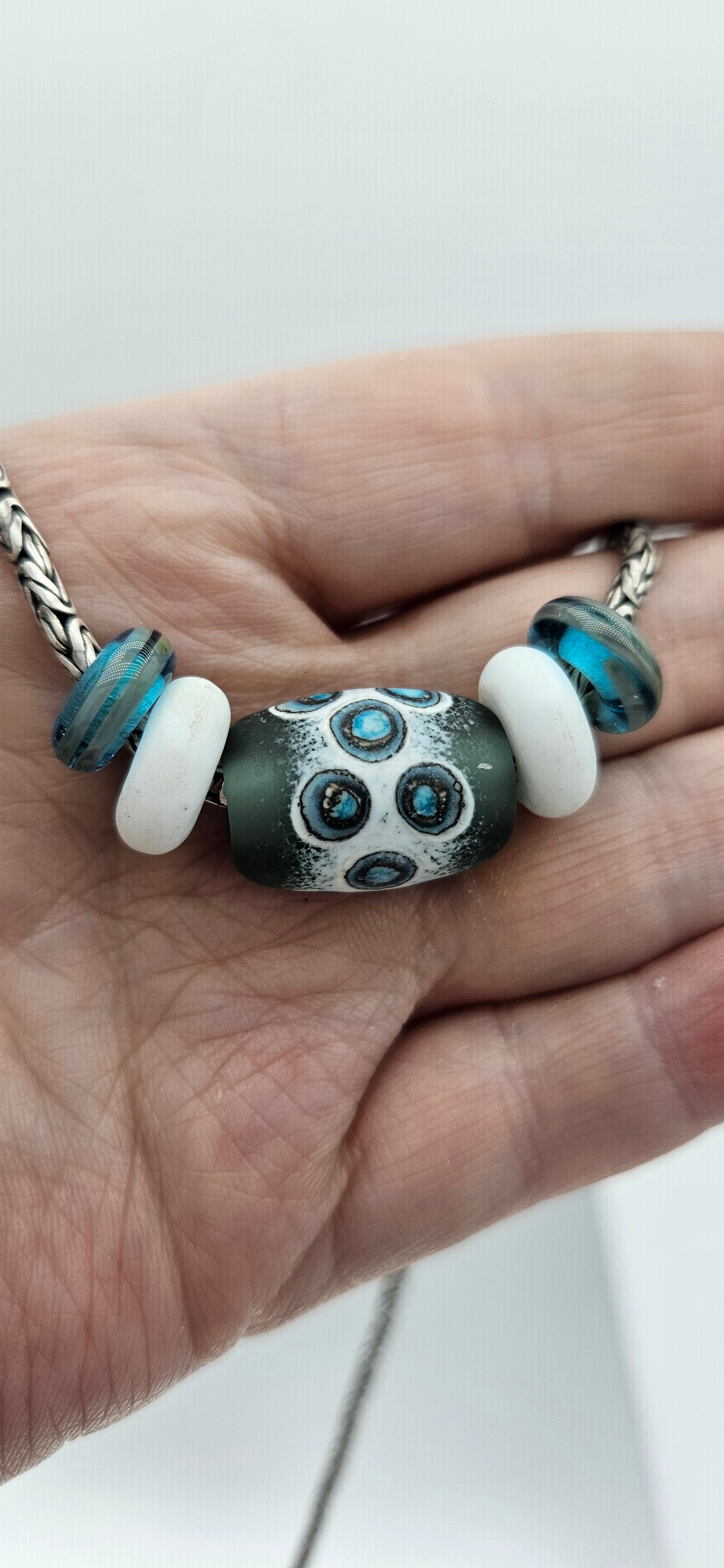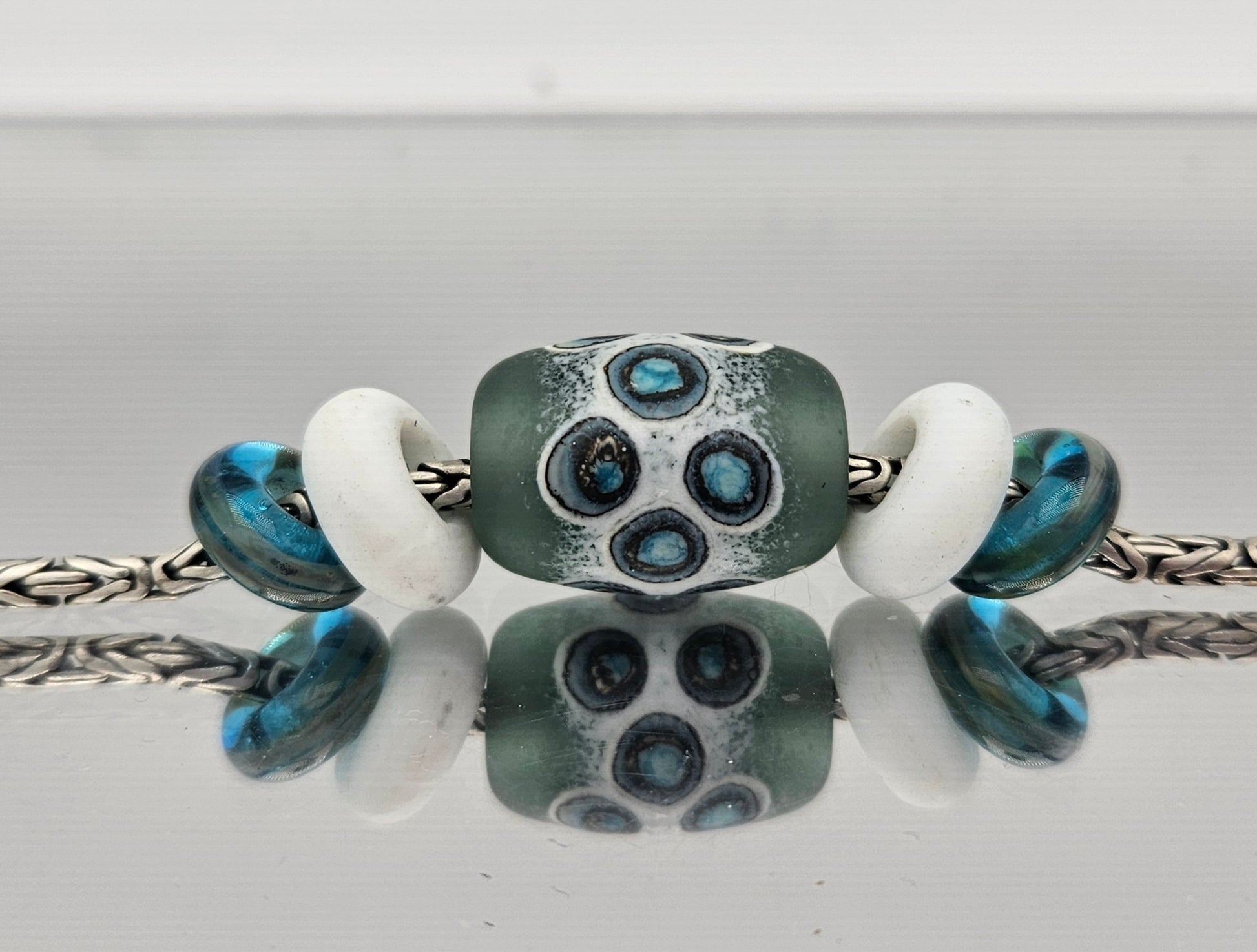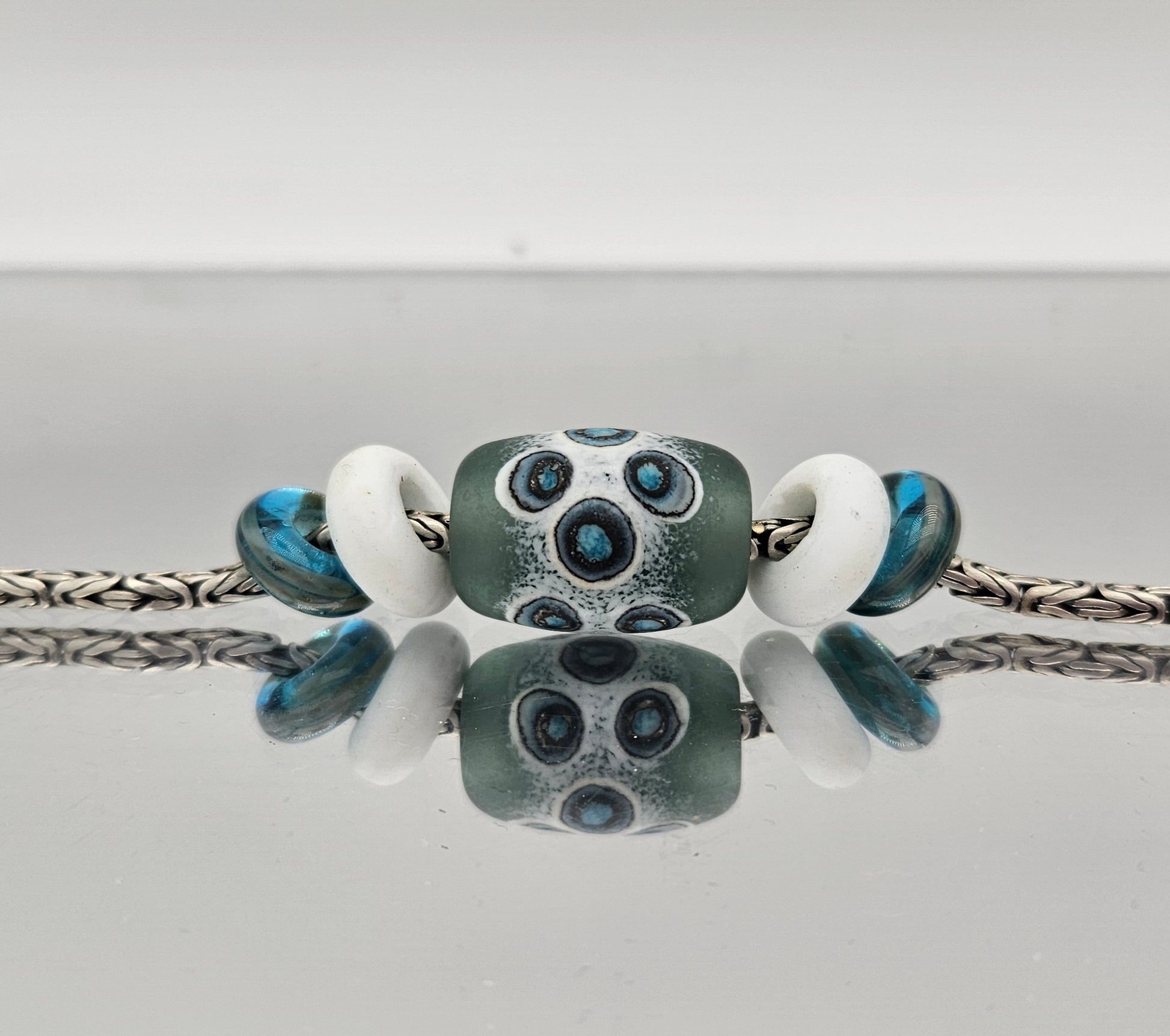 These beads are handmade by the glass artist Julie Burgard.