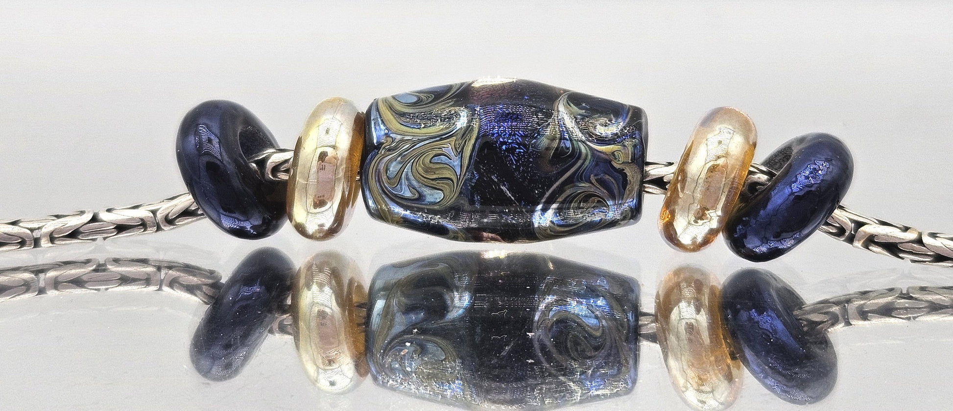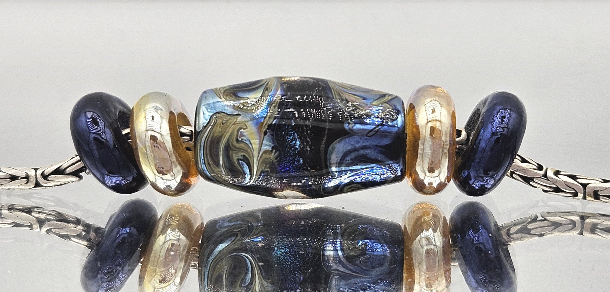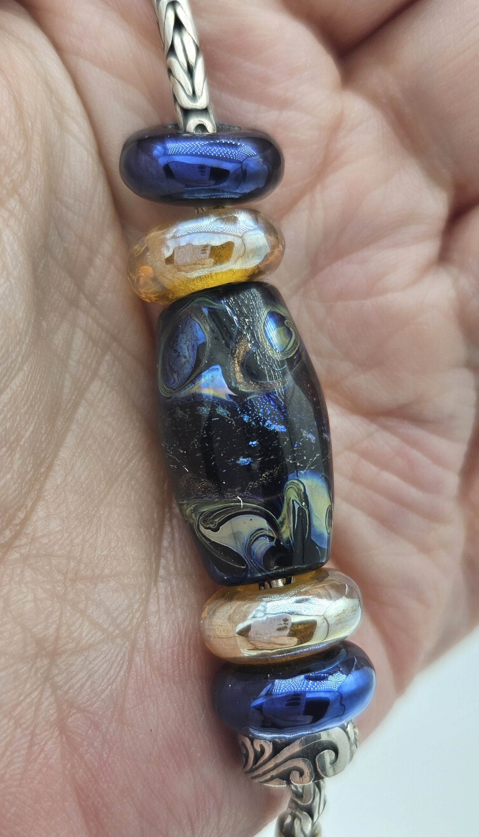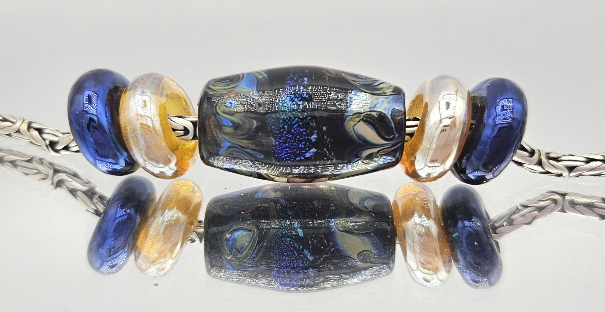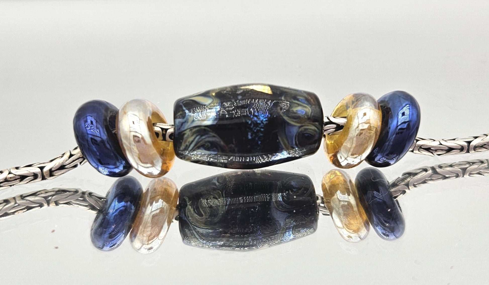 These beads are handmade by the glass artist Irina Nikolaenkova.