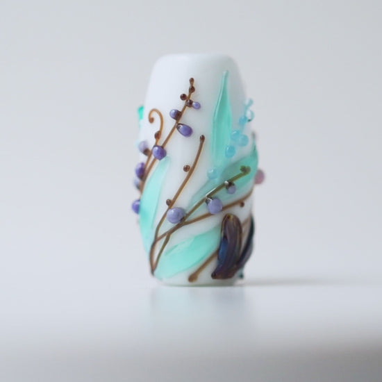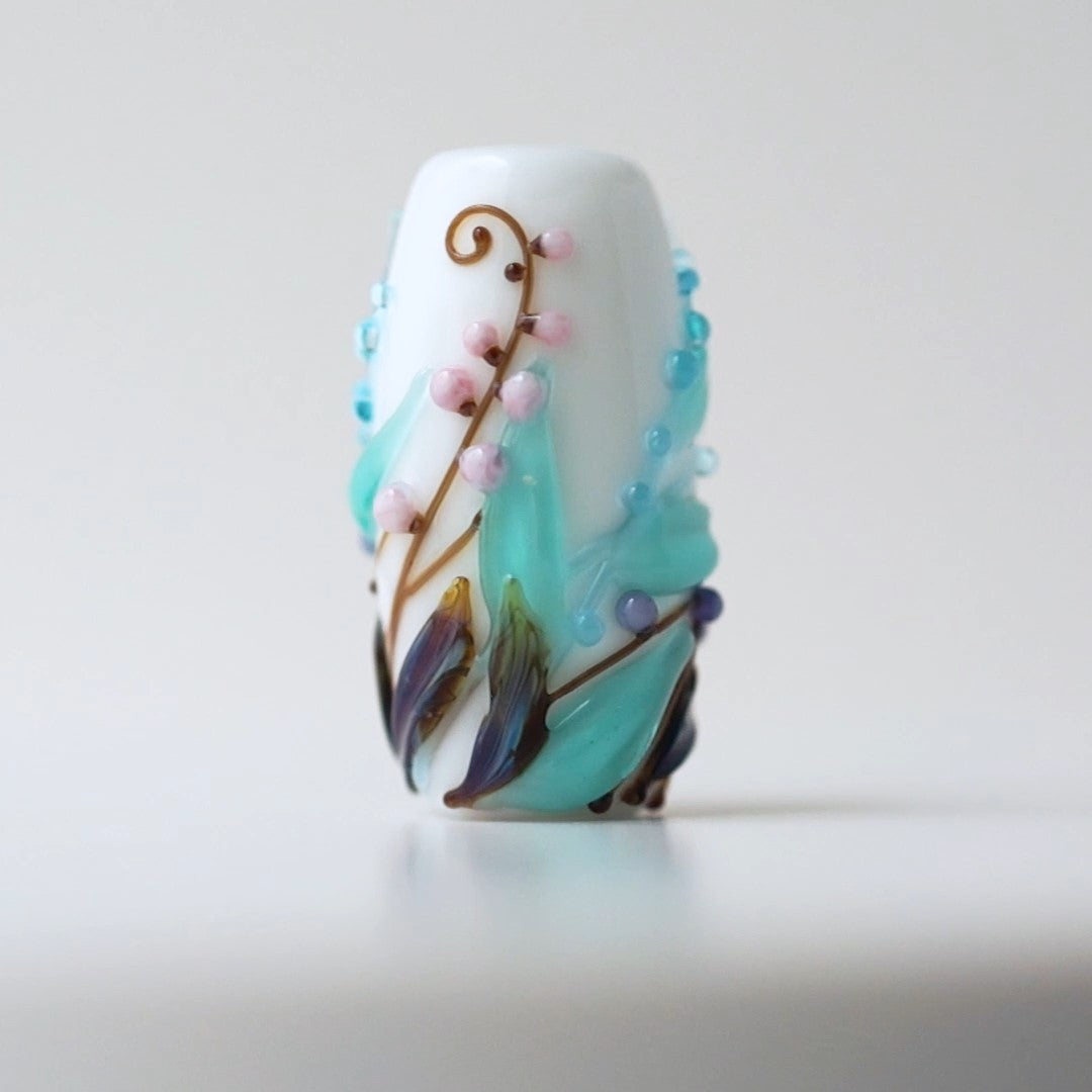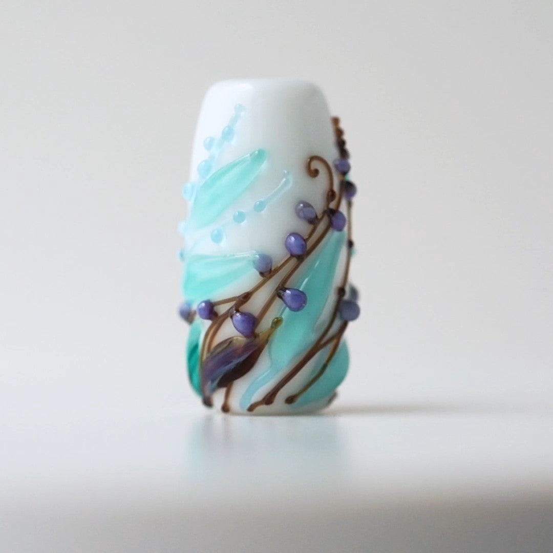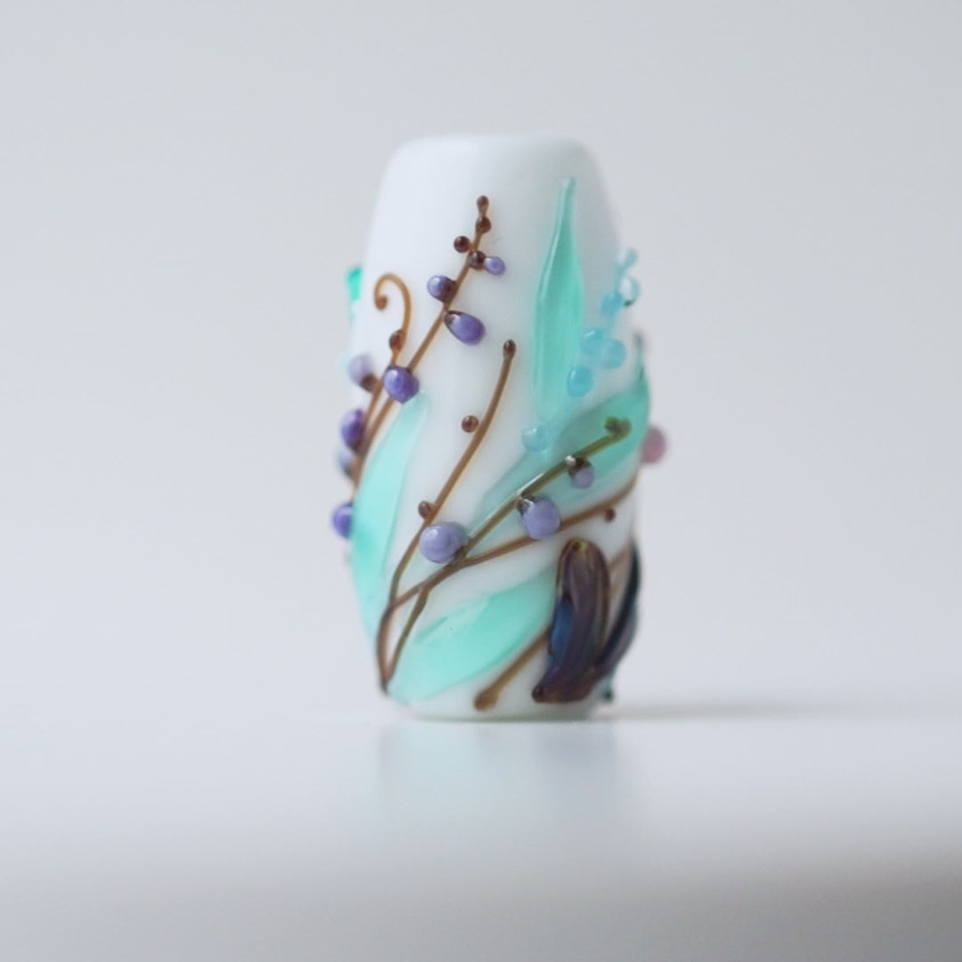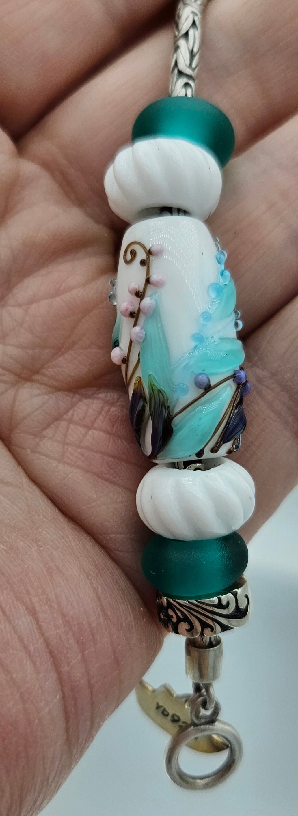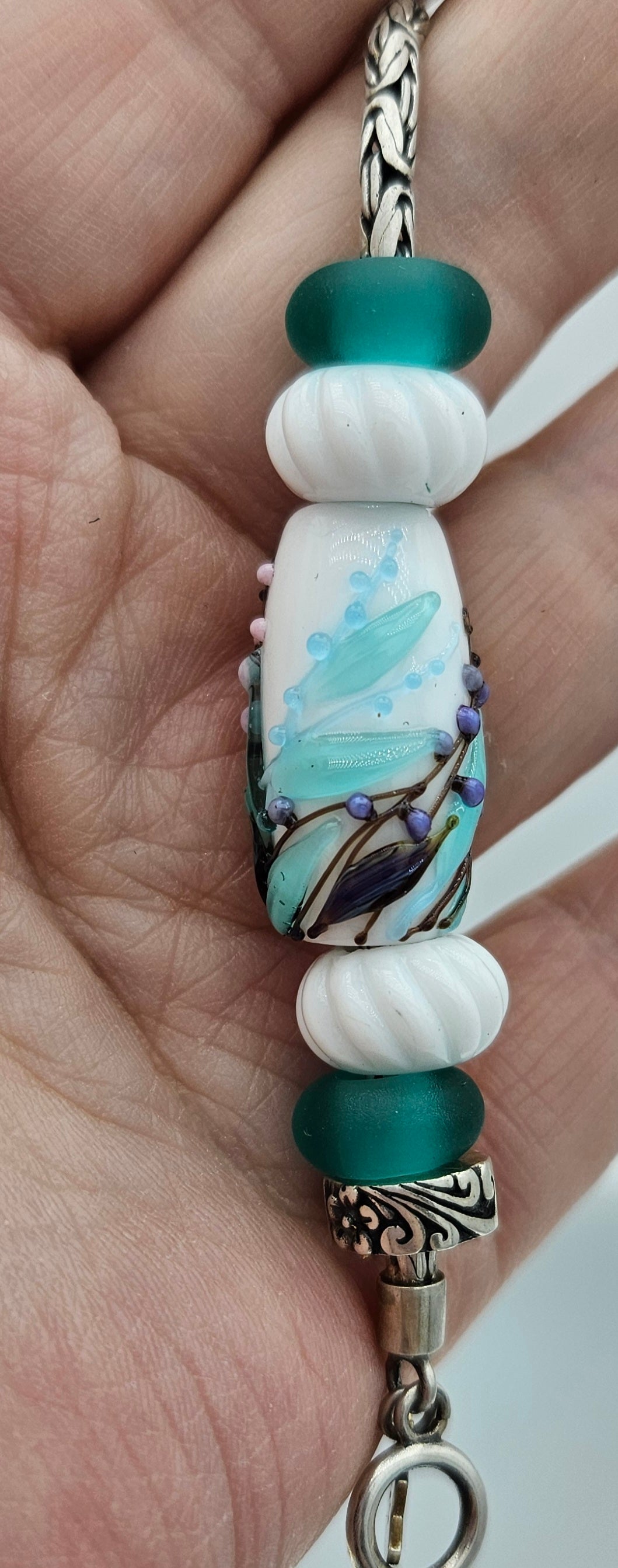 This beads is handmade by the glass artist Olia Oleksiichuk. Side beads will accompany this gorgeous focal at no additional cost. This is a purchase of 1 focal and 2 smaller glass sides, not pictured.