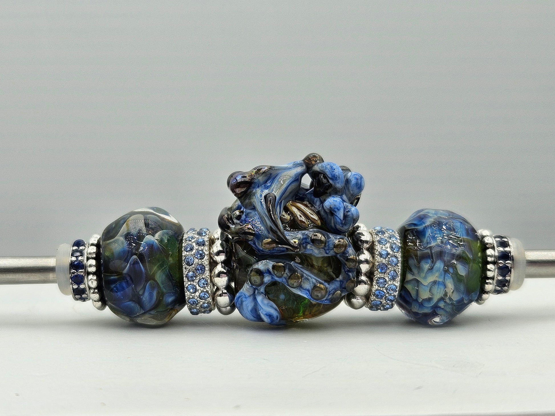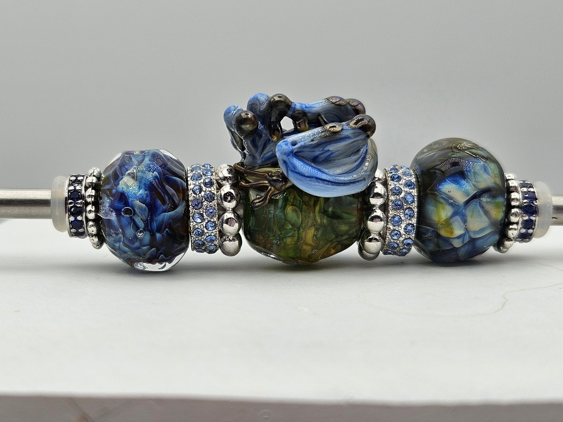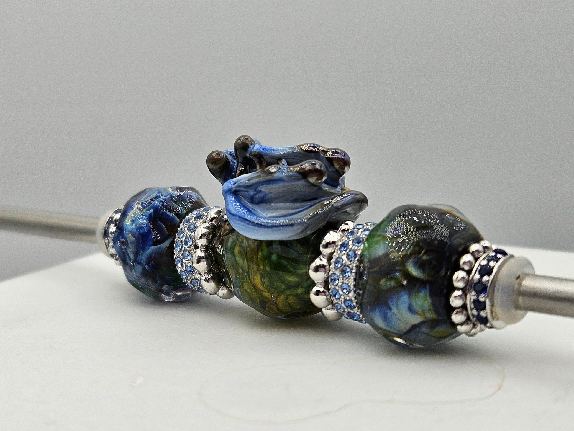 These beads are handmade by the glass artist Tatiana Orlova. Sides may be exchanged from a huge selection of alternate options.