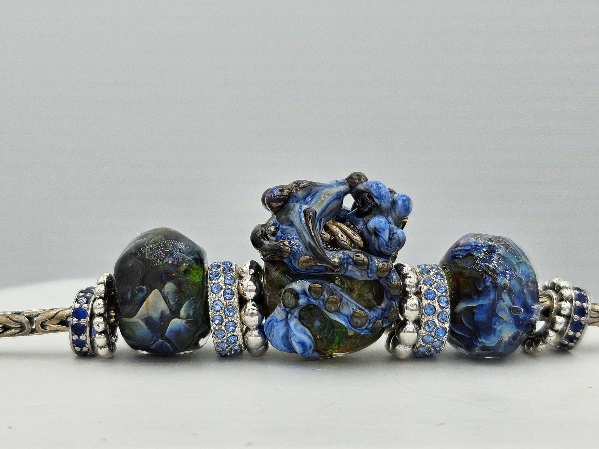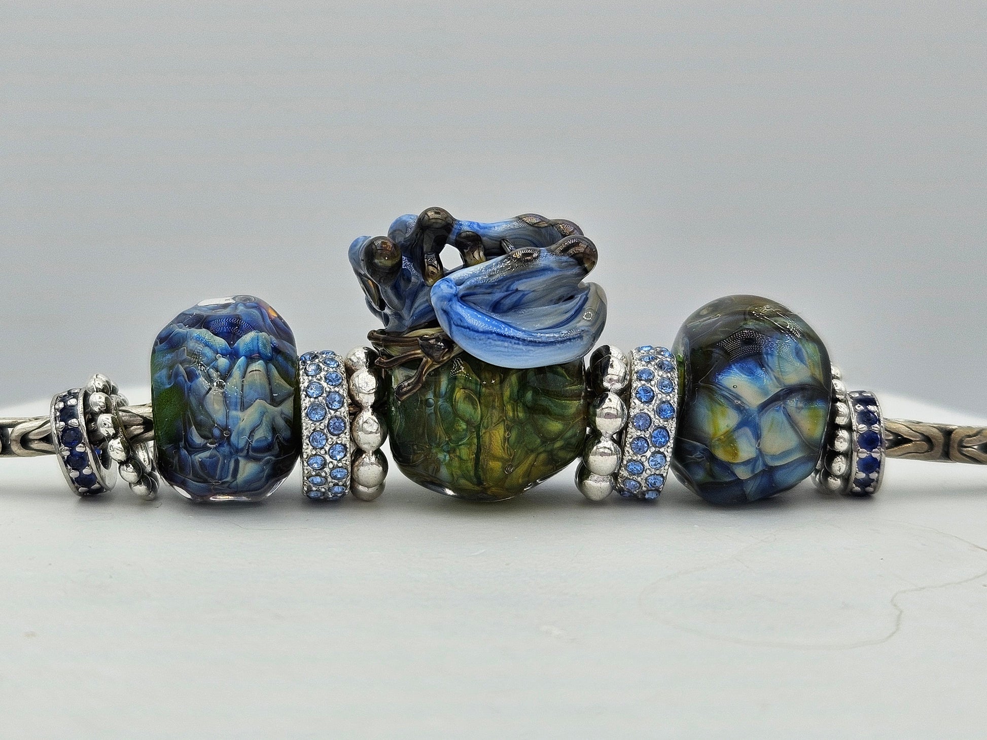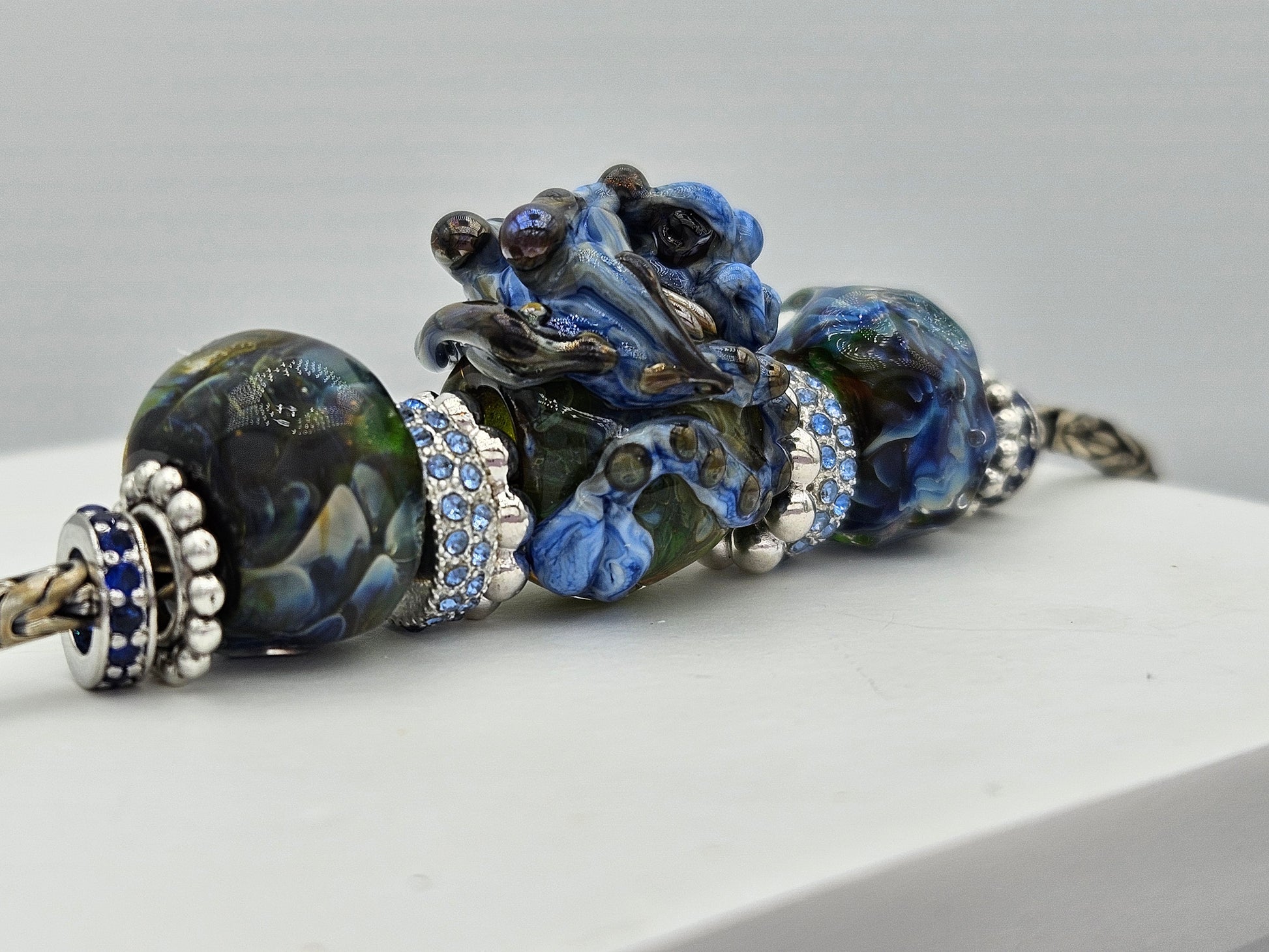 These beads are handmade by the glass artist Tatiana Orlova. Sides may be exchanged from a huge selection of alternate options.